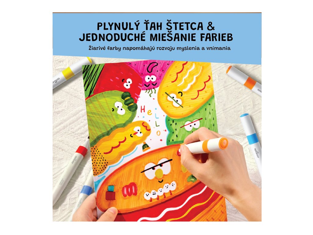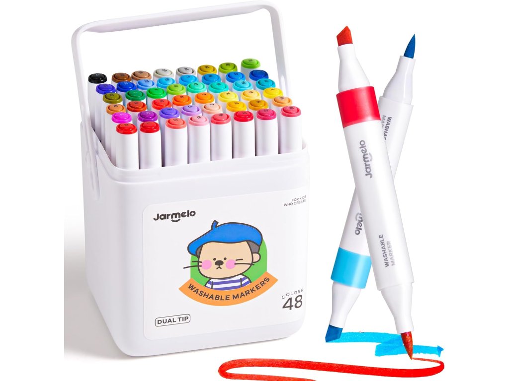 Kétoldalas filctollak két heggyel, 48 db-os dobozban. Dupla adag színek kicsi és nagy művészi alkotásokhoz praktikus csomagolásban. A Jarmelo kétoldalas filctollak a finom ecset és a ferde hegy kombinációját kínálják a maximális kreatív lehetőségekhez. A 48 ragyogó árnyalat lehetővé teszi a gyermekek és az idősebb alkotók számára, hogy a legszebb történeteket rajzolják meg. Ráadásul a praktikus doboznak köszönhetően bárhová magukkal vihetik őket.Mitől különlegesek ezek a filctollak? Két lehetőség egy filctollban – az egyik rész finom ecset alakú, a másik ferde heggyel rendelkezik. A filctollak moshatók – könnyen tisztíthatók a kézről, asztalról vagy ruháról. Ergonomikus testforma – kényelmesen illeszkedik a kis kezekbe. Praktikus csomagolásban tárolva – nagyszerű otthon és útközben is. Biztonságos, nem mérgező, 3 éves kortól ajánlott gyermekek számára (iskolások számára is alkalmas). A szilárd záróelem a filctollakat hosszú ideig nedvesen és készen tartja a következő kalandra.
