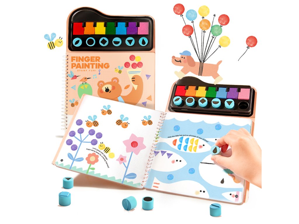 Kreatív könyv Ujjfestés bélyegzőkkel Hagyja, hogy a gyerekek megalkossák saját világukat Ez a kreatív készlet ötvözi az egyszerű ujjfestékeket a formázott bélyegzőkkel – ideális az első mintákhoz és utazáshoz. Nem mérgező, mosható festékeket és bélyegzőket tartalmaz, amelyeket a gyerekek egyszerűen a papírra helyezhetnek – gyönyörű alkotásokat hozhatnak létre por és rendetlenség nélkül. Tökéletes inspiráció a fantázia fejlesztéséhez.Mitől tökéletes ez a készlet? 7 nem mérgező ujjfesték – gyengéd, biztonságos és mosható7 bélyegző – könnyű alkotás ecset nélkülKreatív könyv tevékenységekkel és útmutatókkal – támogatja a játékot és a koncentrációt Szagtalan, problémamentes – ideális 18 hónapos kortól, egyszerű takarításFejleszti a finommotorikát és a kreativitást a szülők stressze nélkül