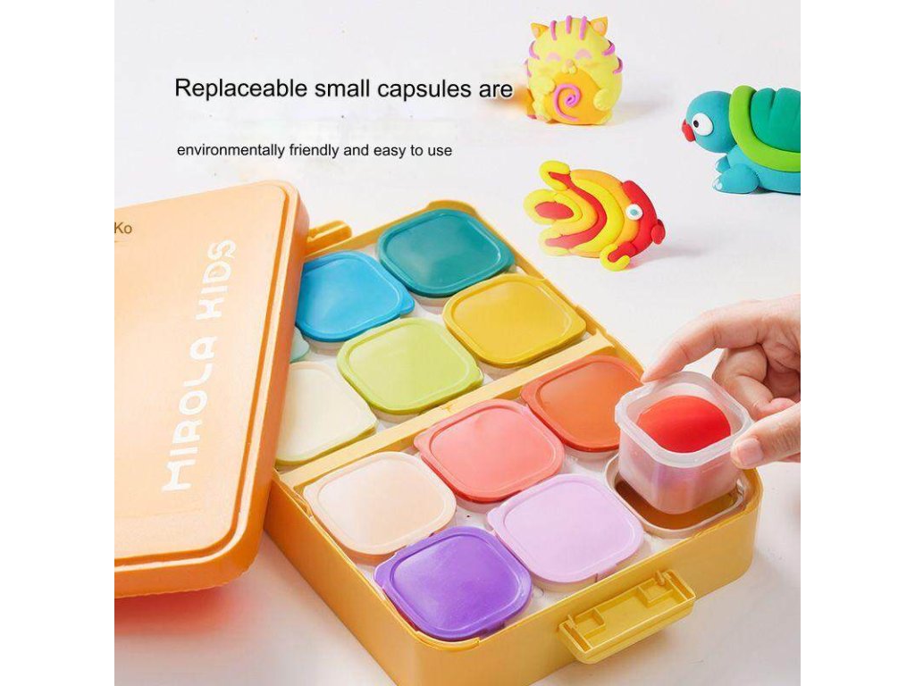 Gyurma dobozban 12 db Puha, természetes és játékos – ideális ügyes kezekbeA Jarmelo gyurma olyan finom, mint egy felhő – minőségi lisztes tésztából készült, kémiai színezékek nélkül. A készlet 12 színt tartalmaz, amelyek keverhetők, formázhatók és visszaalakíthatók eredeti formájukba. Ha azonban a gyurmát a levegőn hagyja, megkeményedik, és nem lehet tovább dolgozni vele. Ily módon azonban a gyerekek a puha alkotásokból valós, kemény figurákat vagy más műveket hozhatnak létre, amelyekkel aztán játszhatnak.Miért nagyszerű ez a gyurma? 12 élénk szín (rózsaszín, lila, fehér, fekete, kék, zöld, sárga, narancssárga, piros...) - keverhetők, formázhatók és visszaalakíthatók eredeti formájukba, amíg a levegőn nem hagyják megszilárdulniTömör doboz fedővel – áttekinthető tárolás és egyszerű szállításDeszka 4 formázó eszközzelKémiai színezékek nélkül, nem mérgező és 3 éves kortól alkalmasFejleszti a finommotorikát, a kreativitást, a színérzékelést – ideális tevékenység otthoni projektekhez vagy óvodába