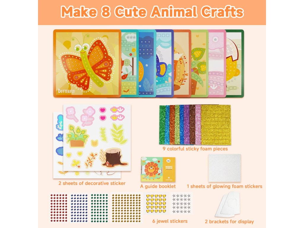 Mozaik Állatok Készíts saját állati hőst! Ez a Jarmelo változatos mozaikkészlete lehetővé teszi a gyermekek számára a finommotoros készségek és a kreatív gondolkodás fejlesztését, rendetlenség nélkül. A gyerekek színes habszivacs négyzeteket és csillogó köveket ragasztanak az előre nyomtatott állati illusztrációkra, vizuálisan vonzó és tapintható alkotásokat hozva létre. Mitől különleges ez a készlet? 8 kártya állati motívumokkal – minden kép más, a krokodiltól a halacskáigSzínes habszivacs mozaikdarabok + csillogó gyöngyház kövekEgyszerű útmutató, amely lépésről lépésre bemutatja az alkotás folyamatátRagasztó nélkül, rendetlenség nélkül – minden darab önmagától tapad a ragadós alapnak köszönhetőenFejleszti a finommotoros készségeket, a türelmet és a kreativitást – ideális ajándék otthonra vagy óvodábaBiztonságos, nem mérgező anyagok, 3 éves kortól alkalmas gyermekek számára