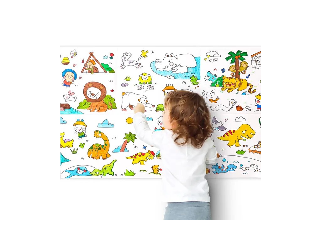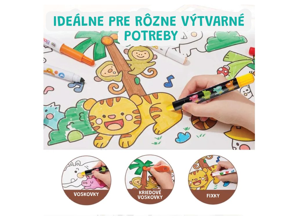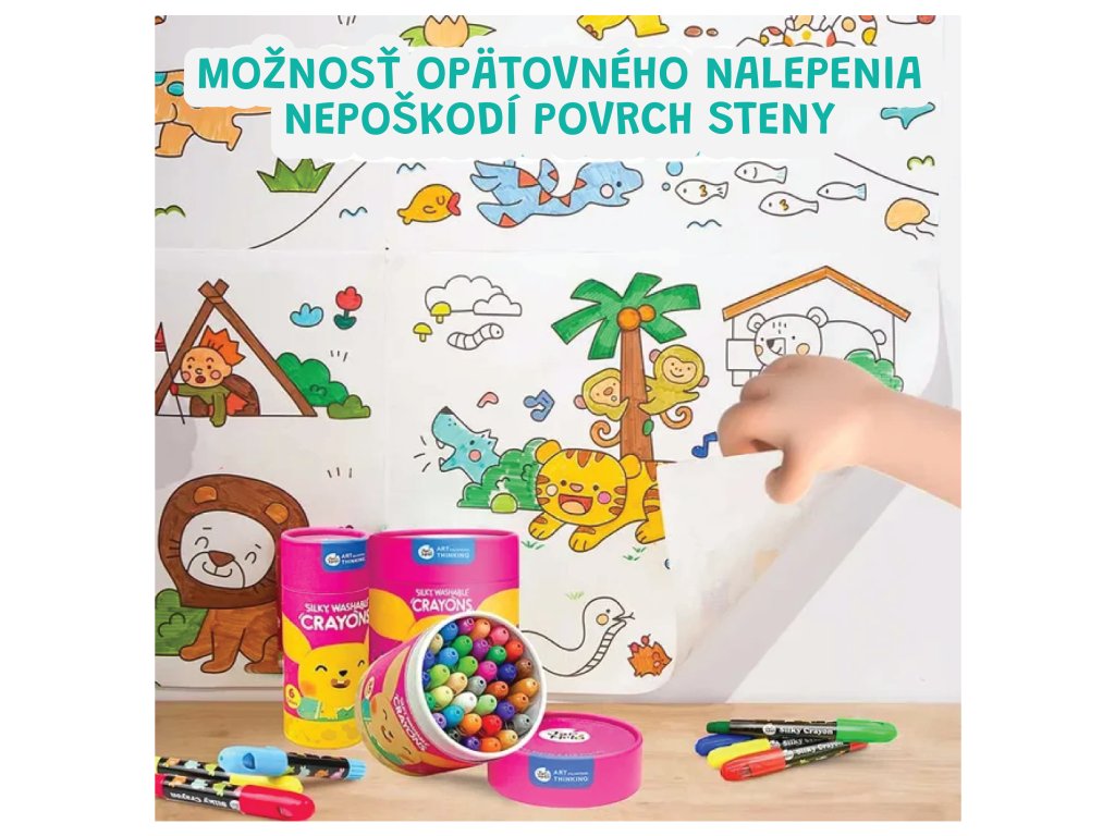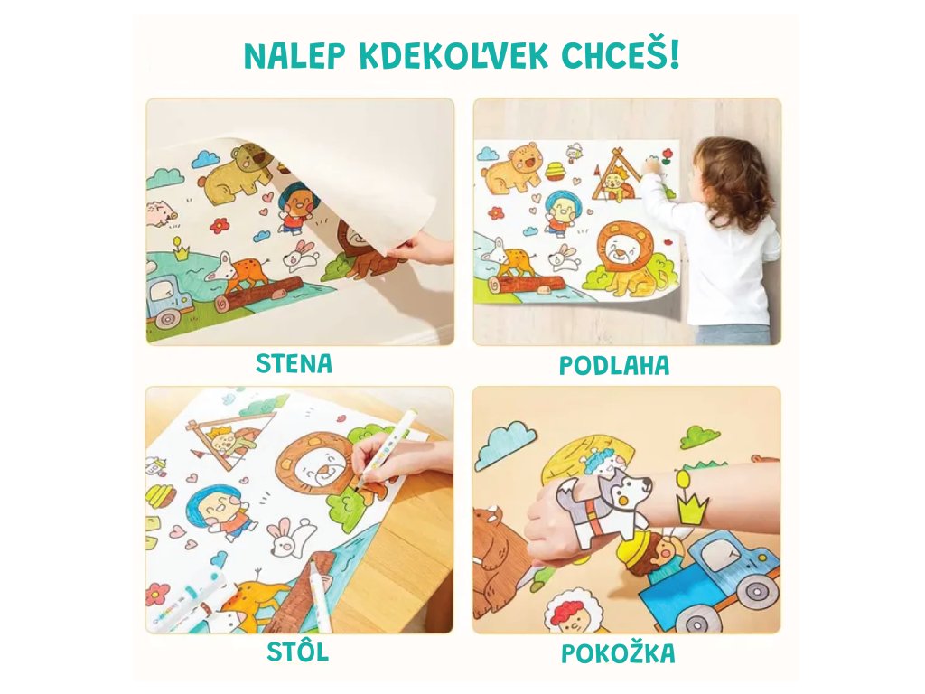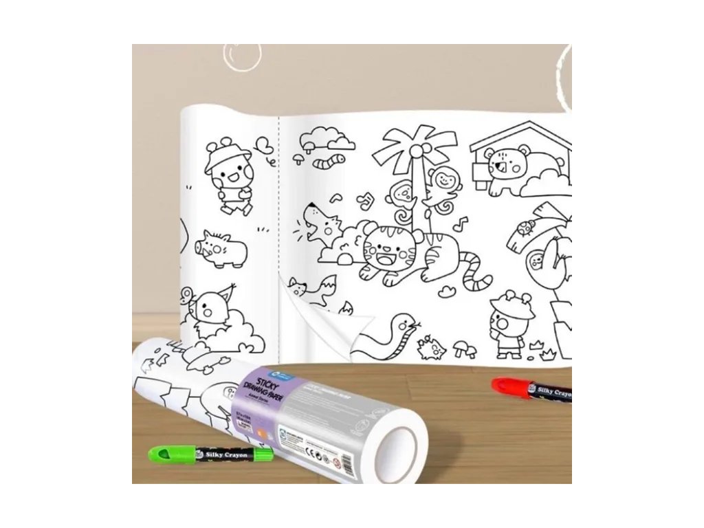 Öntapadós kifestő tekercsben Állatkák 3 m Állj a kifestett bútorok és falak elé! Univerzális színező a Jarmelo-tól, amelyet a falra, az íróasztalra vagy akár a padlóra is felragaszthat a nagyszerű szórakozás érdekében. Nagy méretének köszönhetően elegendő helyet biztosít több gyermek és egész napos alkotás számára. A kiváló minőségű, ragasztós hátú papír elkenődés nélkül viszi fel a színeket – nincs folt és könnyen eltávolítható nyomok nélkül. Miért nagyszerű kiegészítője a gyerekszobának? 3 m x 40 cm-es tekercs vidám állatmintákkal – ideális a gyermekek kreativitásáhozÖntapadós hátlap – bárhová felragaszthatod ragasztó nélkül, és a gyerekek azonnal alkothatnakA felület elbírja a zsírkrétát, filctollat és festéket is – jól tartja a színeket és nem szivárog átVastag, minőségi papír, könnyen eltávolítható a fal károsítása nélkülNagyszerű partikra, ajándékba vagy csoportos tevékenységekre is