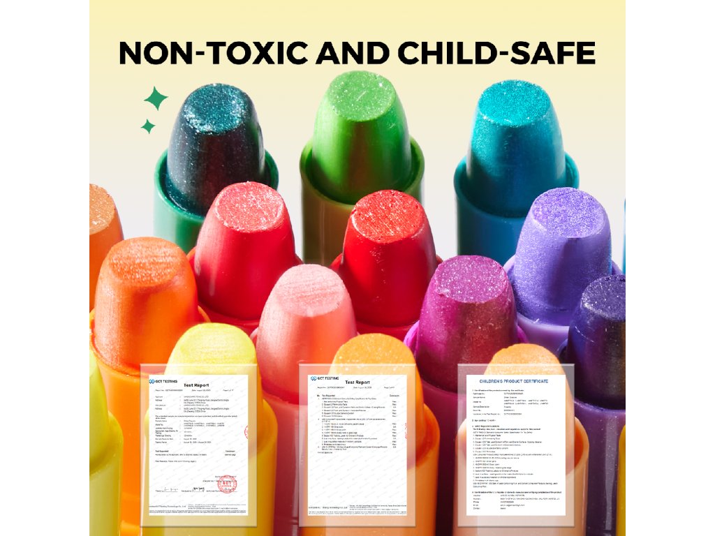 Puha zsírkréták, mosható, csillámos, 24 db Rajzolj, alkoss és szórakozz – olyan zsírkrétákkal, amelyeket a gyerekek és a szülők is imádnak! Ragyogtasd fel gyermeke világát színekkel! Puha, mosható, csillámos zsírkrétáink 24 darabos praktikus csomagolásban végtelen kreatív lehetőségeket kínálnak – papíron, de akár az arcon vagy a testen is. Nyomás nélkül, piszok nélkül, csak a tiszta alkotás öröme!Miért fogják kedvelni gyermekeid pont ezeket a csillámos zsírkrétákat? Könnyű, mint a tollpihe – a zsírkréták gyengéd érintésre is gyönyörűen elkenődnek, amit minden gyermekkezecske értékelni fog.Mosható és nem hagy foltot – egyszerűen lemosható a bőrről és a ruháról is.Biztonságos összetétel – a zsírkréták glicerinből készültek és egészségre ártalmatlanok. Arcfestésre is ideális.Praktikus tok és kihúzható csomagolás – a zsírkréták nem törnek el, mindig kéznél vannak és könnyen tárolhatók.Fejlesztik a finommotorikát és a képzeletet – minden egyes vonás segít a gyermeknek játékosan és kreatívan fejlődni. 24 csillámos szín egy dobozban – hogy minden csillogó műalkotás tele legyen élettel és örömmel.