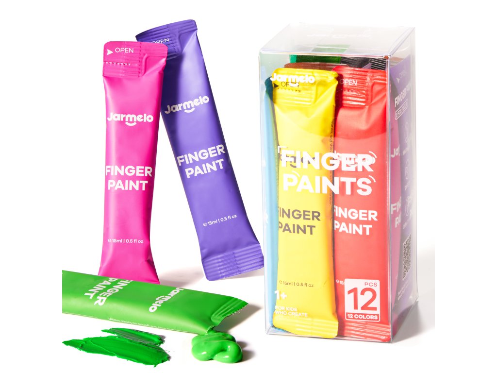Ujjfestékek utazáshoz 12 db Rendrakásmentes alkotás – ideális utazáshoz és otthonra A Jarmelo ujjfestékek praktikus kis tasakokban olyanok, mint a kis színes kincsek. Minden tasak egy vidám alkotáshoz van előkészítve – pazarlás és kiömlés nélkül. A praktikus csomagolásnak köszönhetően bárhol használhatja őket – otthon, az óvodában és kiránduláson is.Miért fogják szeretni a gyerekek? 12 tasak finom ujjfesték gyönyörű, élénk árnyalatokbanAlumínium fóliacsomagolás – pontos adagolás, kevesebb rendetlenségNem mérgező, mosható, szagtalan – már 18 hónapos kortól alkalmasKrémes textúra – támogatja az érzékszervi fejlődést és a finommotorikátHordozható doboz – ideális ajándéknak vagy kreativitásnak utazáshoz