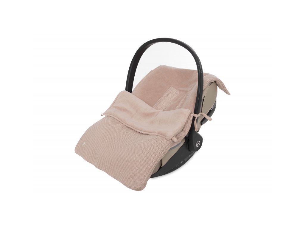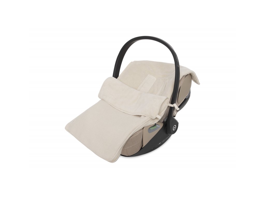 A stílusos kötött babakocsi külső része puha kötött anyagból, belső része pedig finom fleece anyagból készült a maximális kényelem és a baba hőkomfortja érdekében az autósülésben. A huzat hátsó részén lévő nyílások lehetővé teszik az autósülés biztonsági öveinek átfűzését, így a huzat az autósülésben előkészítve tartható, és a kinyitás után már csak be kell helyezni és becsatolni a gyermeket az autósülésbe. Az autóban vagy a szabadban lévő hőmérséklettől függően cipzárral zárhatja a huzatot, vagy éppen nyitva hagyhatja, hogy biztosítsa a gyermek hőkomfortját. A huzat felső részén lévő patentos rögzítés lehetővé teszi, hogy kapucnit hozzon létre a gyermek feje védelmére, például amikor a gyermeket az autósülésben hordozza a szabadban.