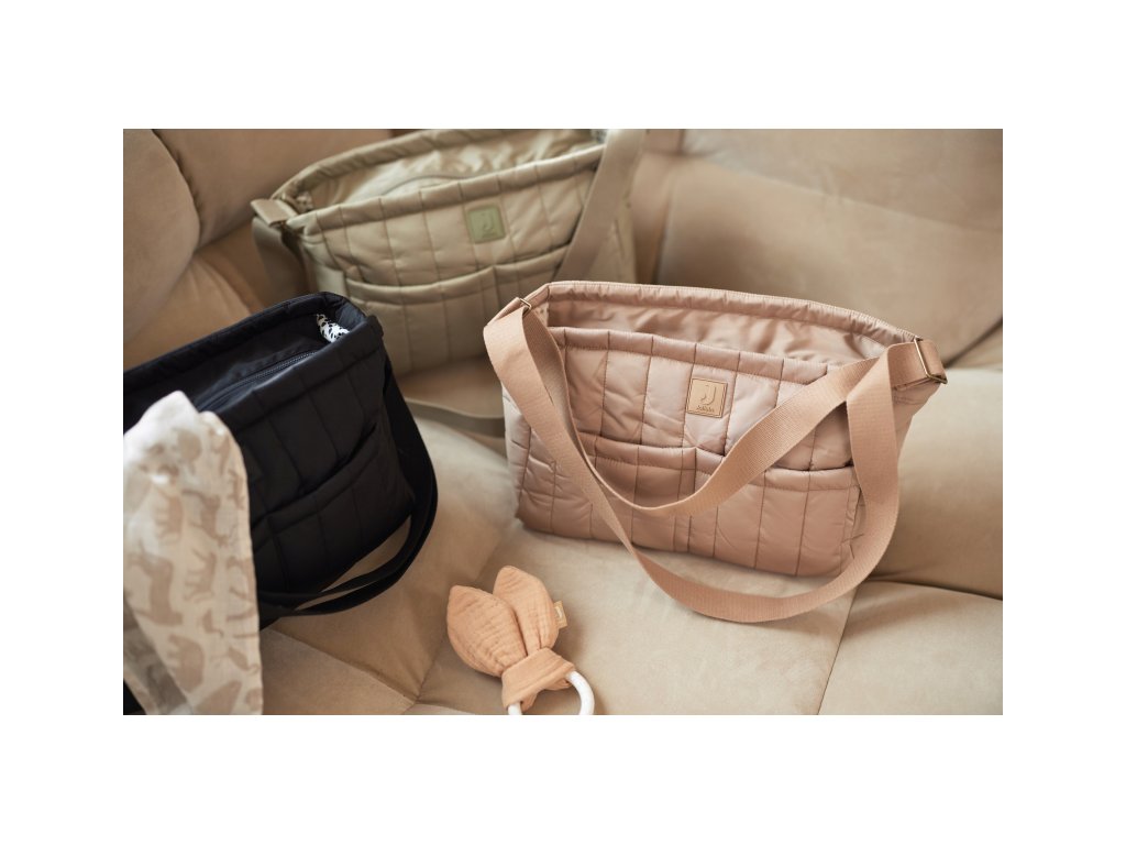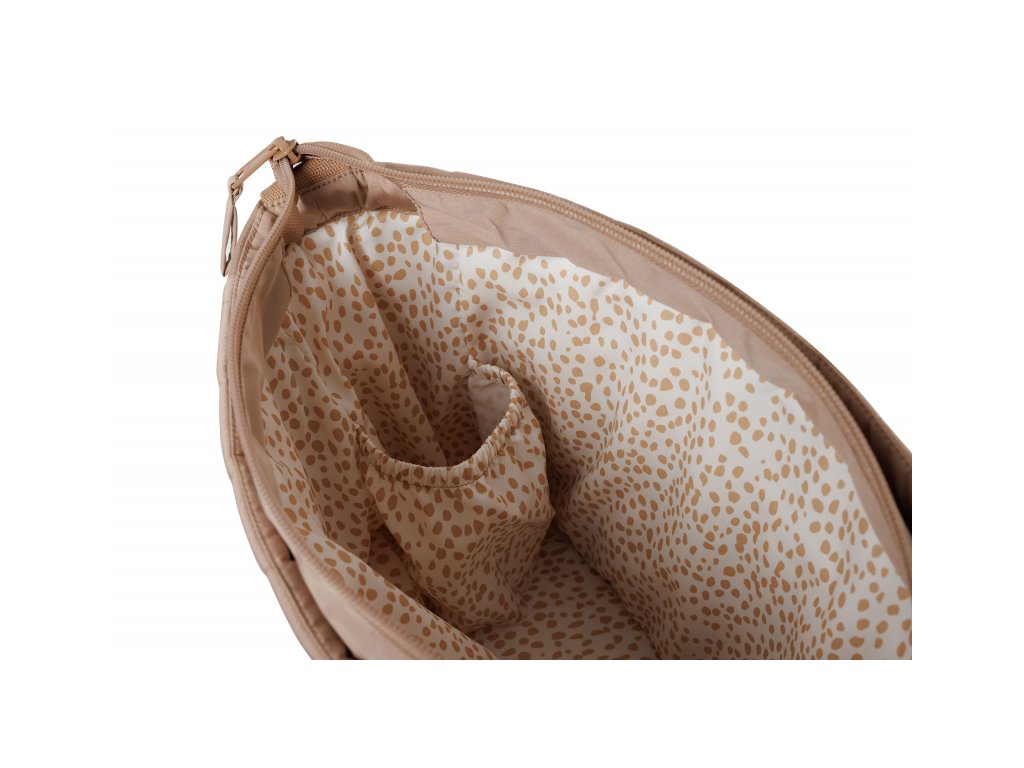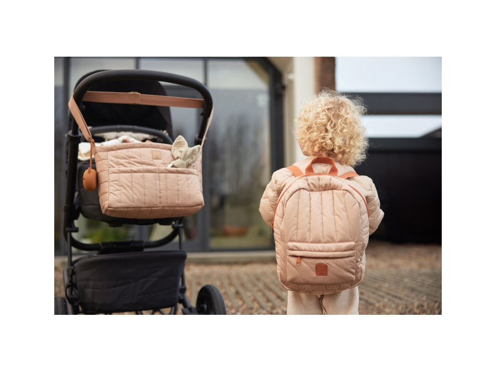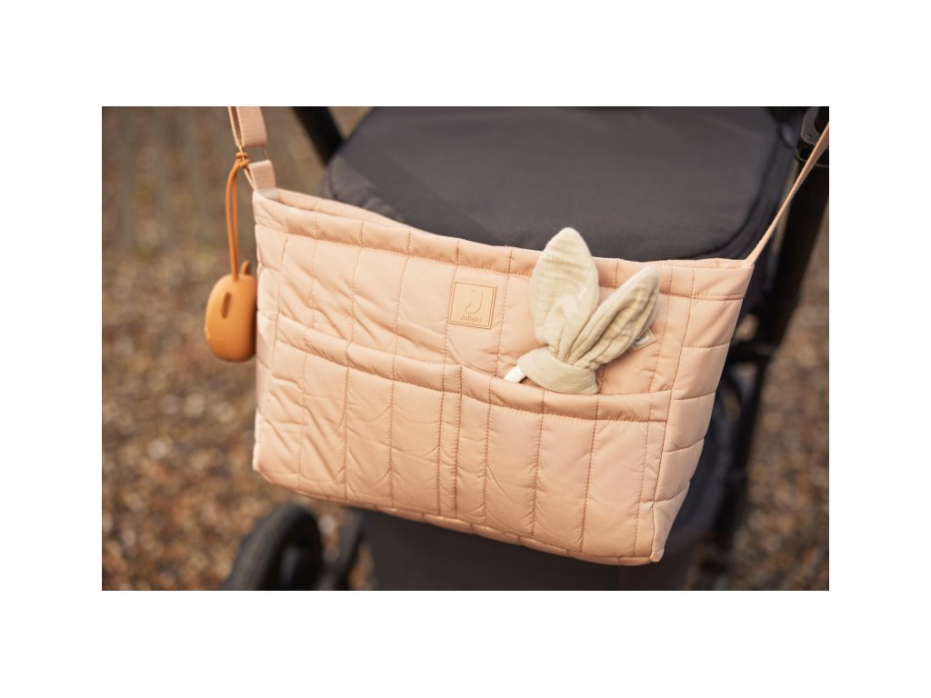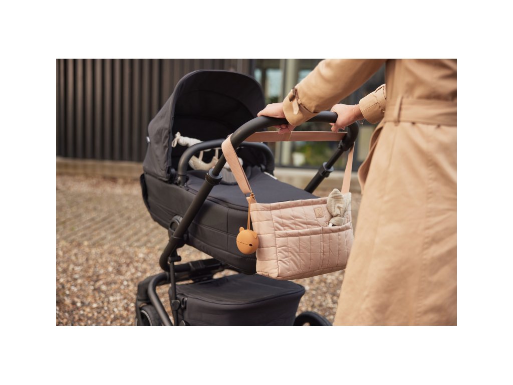 A babakocsi szervezője kellemes, steppelt anyagból, töltelékkel és eredeti pöttyös béléssel számos belső és külső zsebet kínál, hogy áttekinthetően elrendezhessen mindent, ami a sétákhoz és kirándulásokhoz szükséges a gyermekével. A vállpánt lehetővé teszi a vállon való viselést és a babakocsi fogantyújára való akasztást is. A szervező cipzárral záródik.