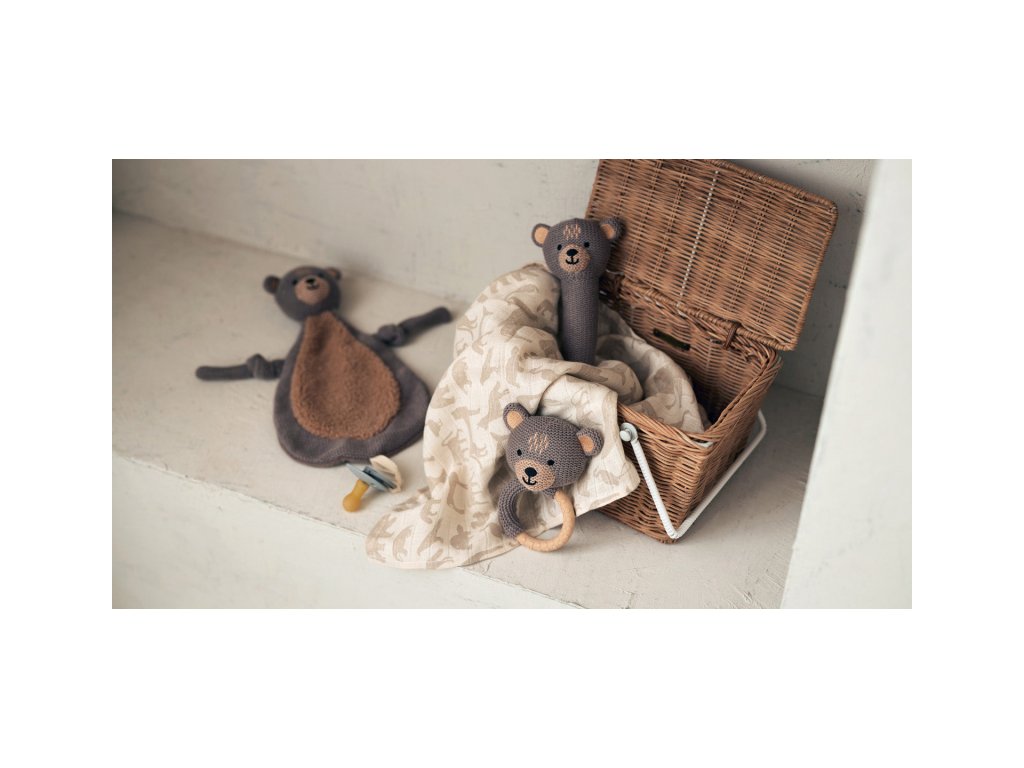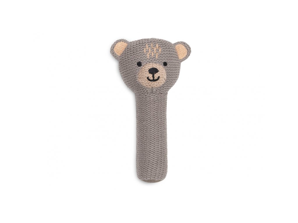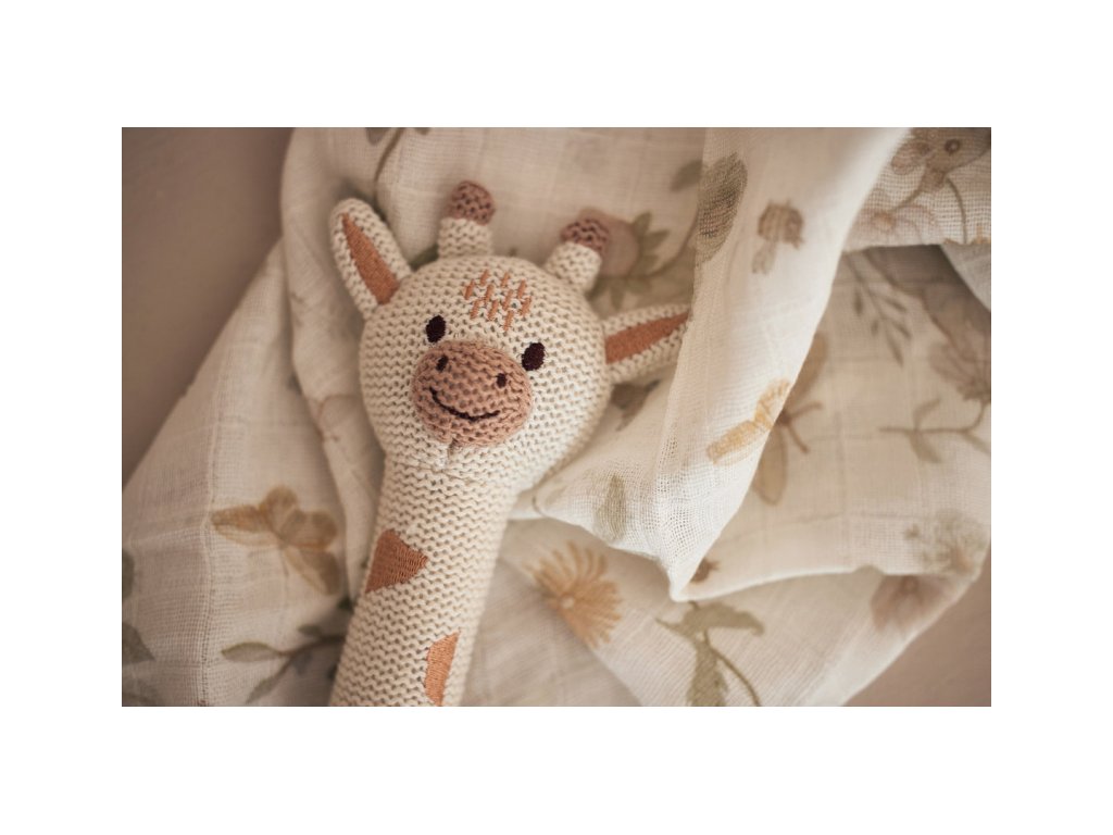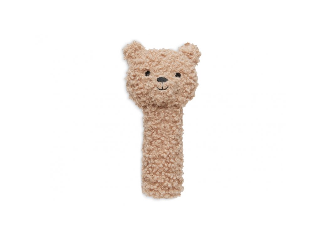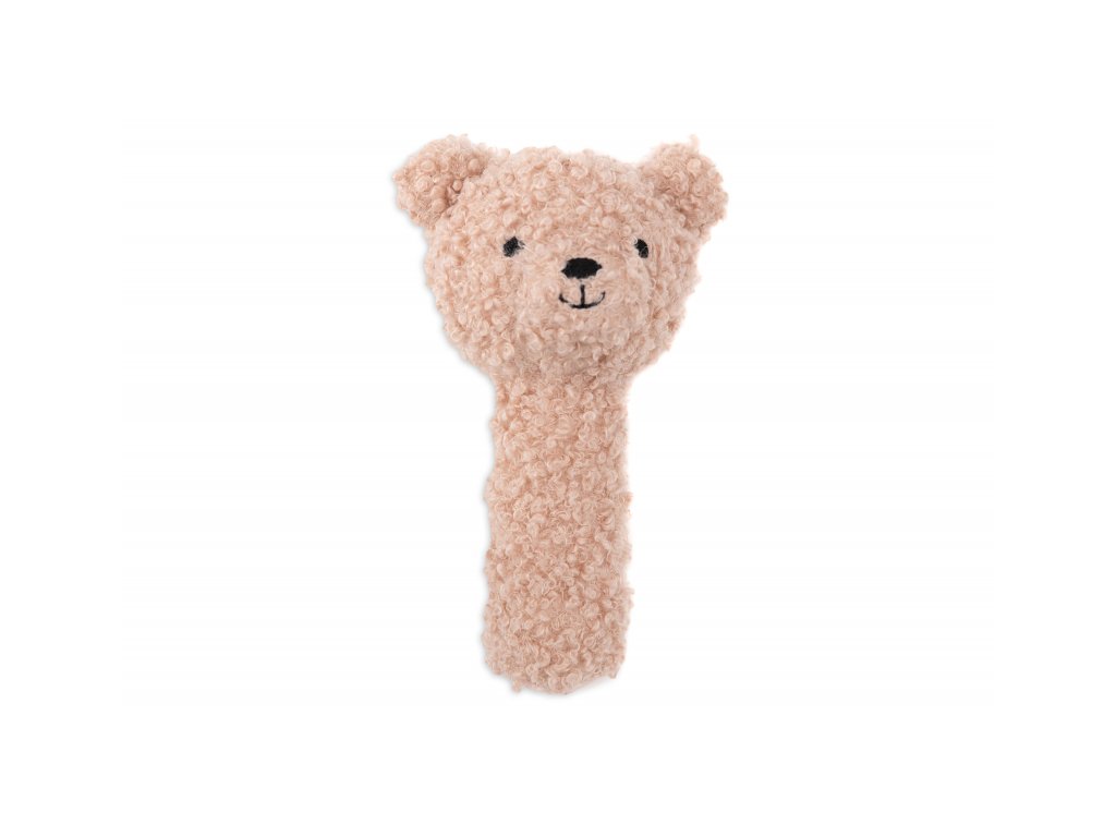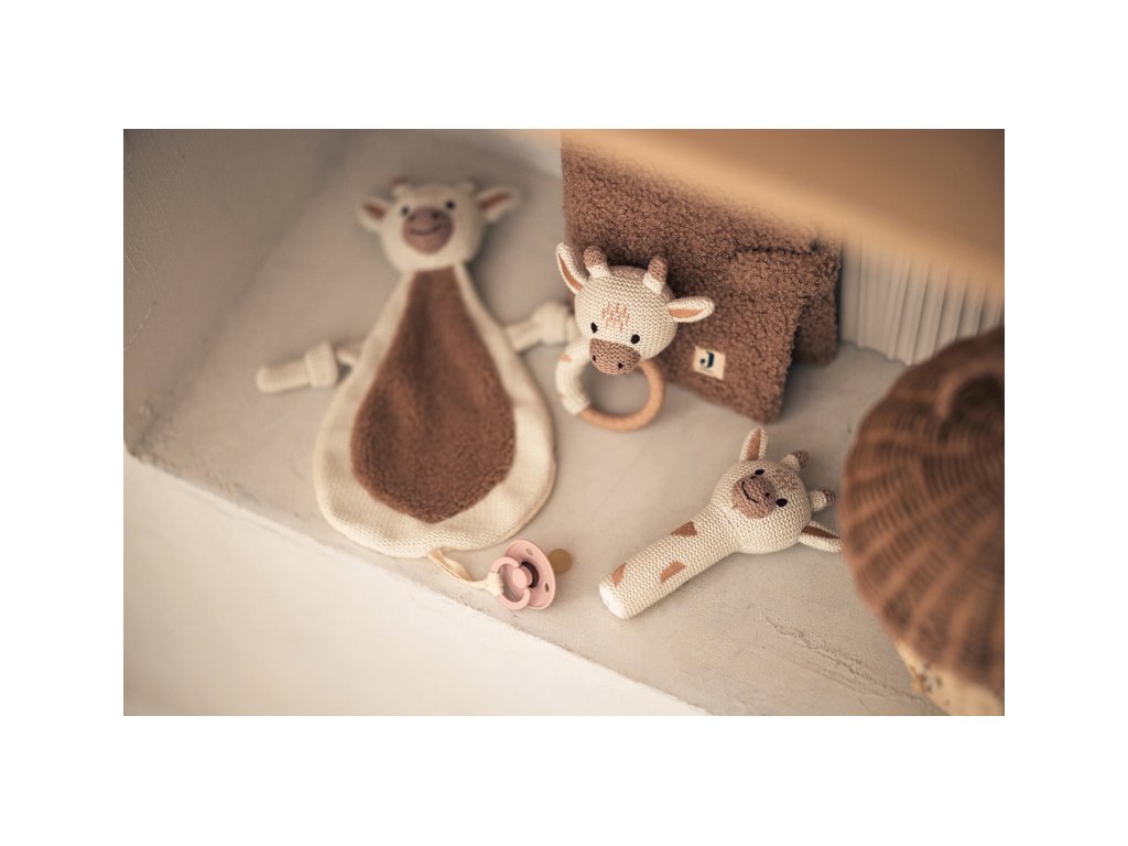 A puha textil anyagból készült kisautó formájú csörgő formája könnyen megfogható, és finoman zörög, amikor mozgatják.