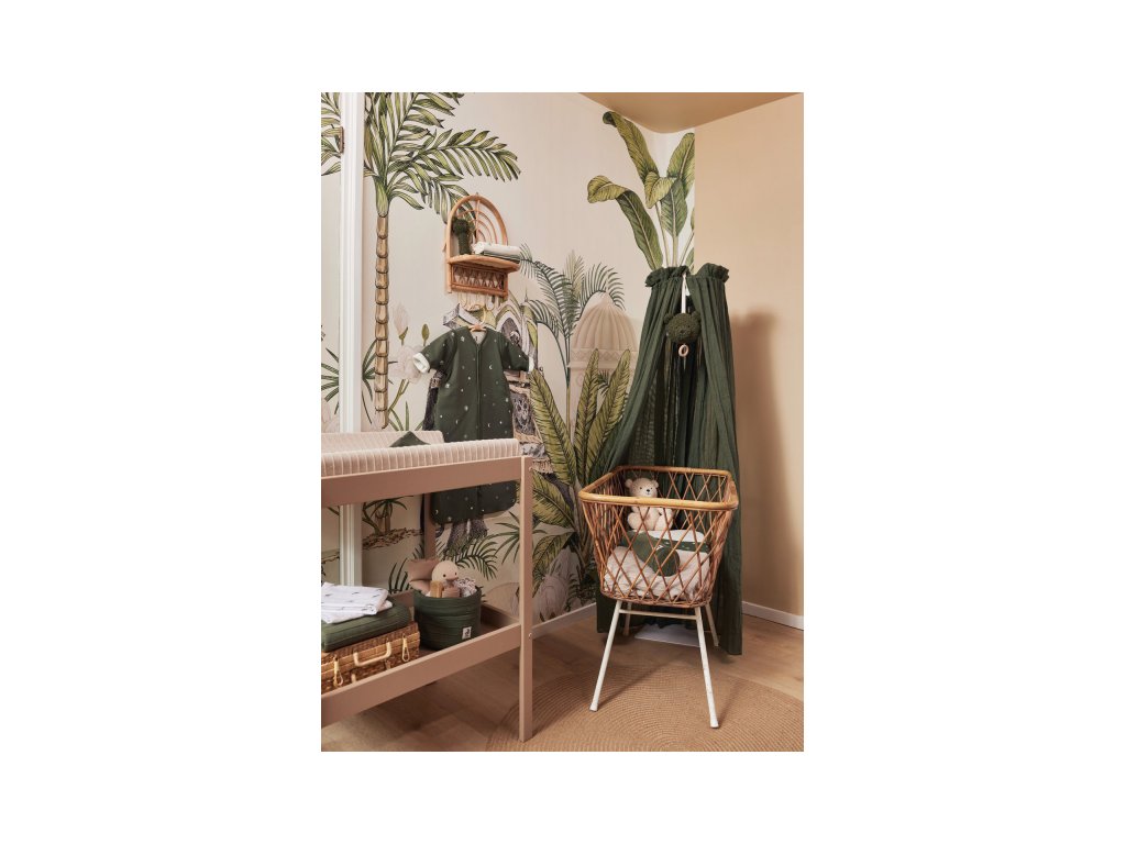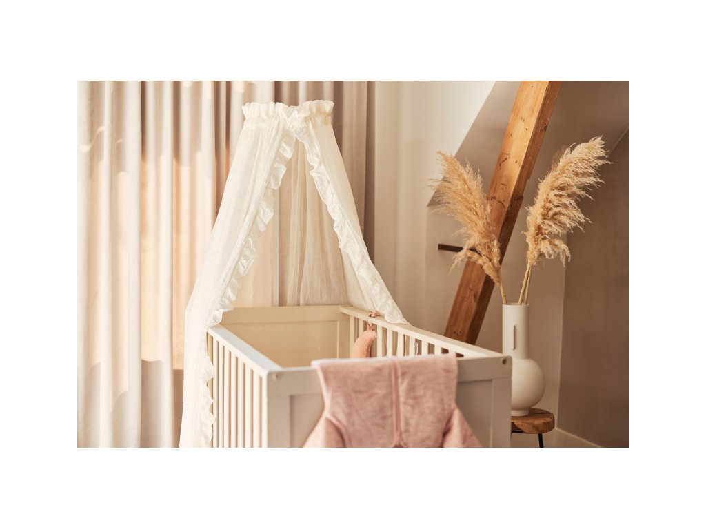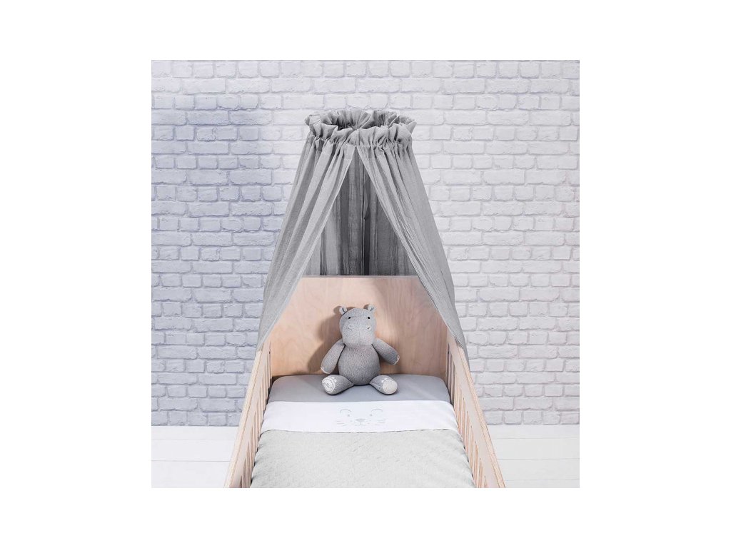 A fém állvány a kiságy fölé akasztható baldachinhoz megkönnyíti azok felakasztását anélkül, hogy a mennyezetbe vagy a falba kellene fúrni. Az állvány 155 cm hosszú baldachinokhoz készült.