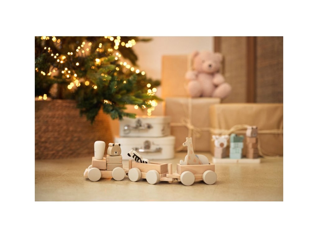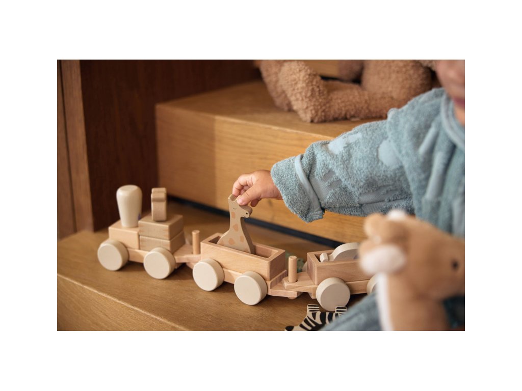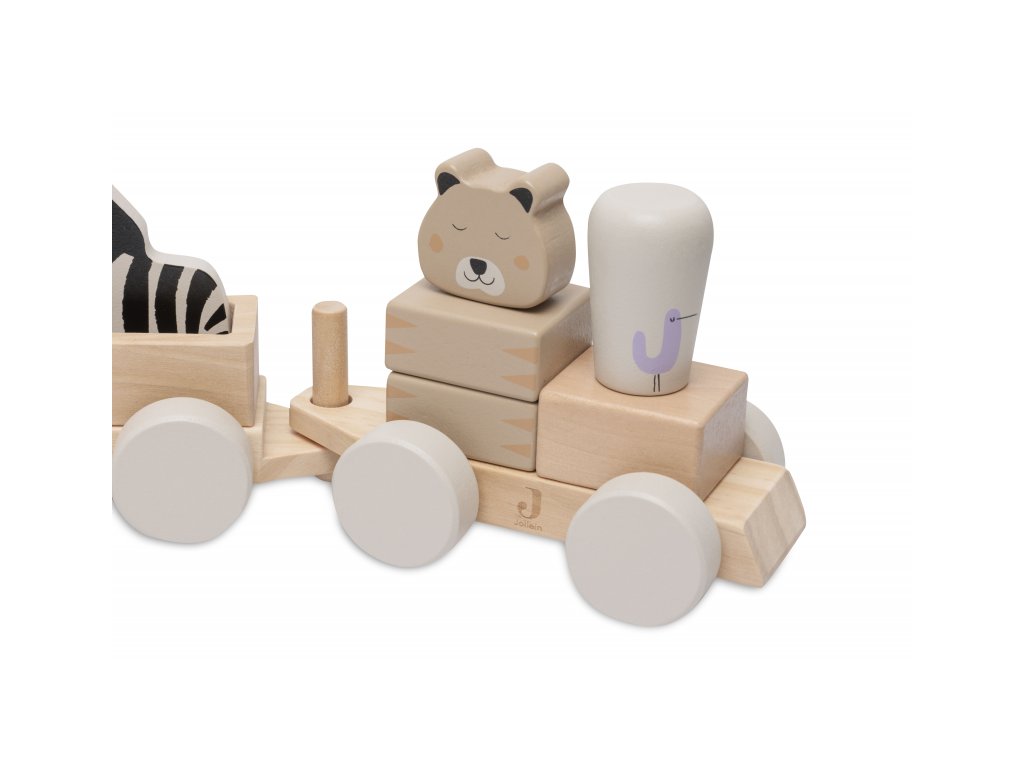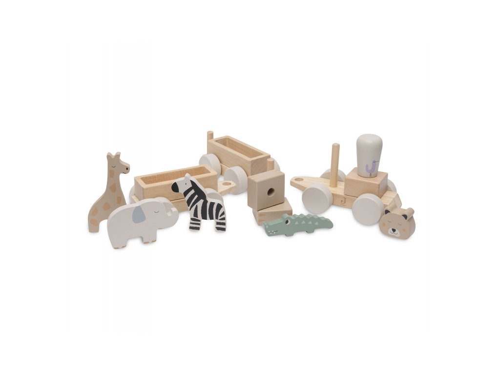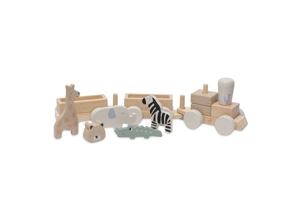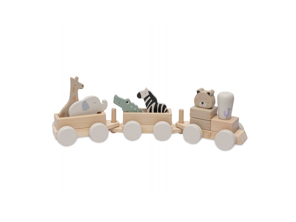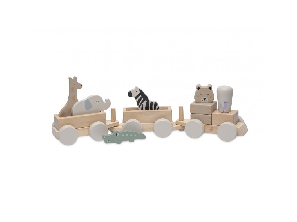 A két vagonnal, négy dzsungelállattal és gepárd formájú mozdonyvezetővel ellátott fa vonat órákon át tartó kreatív szórakozást biztosít gyermekének. A gyönyörű fa kivitelű vonat eredeti dekorációként is szolgál majd a gyermekszobában.