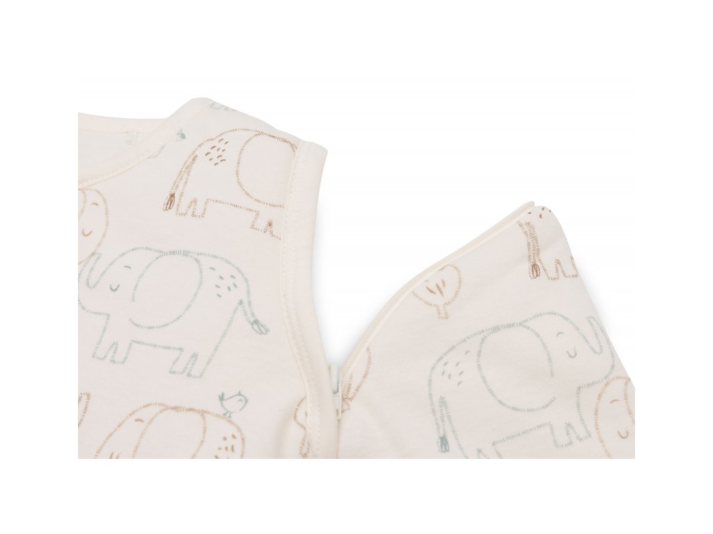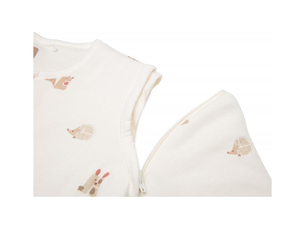 A praktikus, levehető ujjú hálózsák változatos használatot kínál az időjárástól és a szoba hőmérsékletétől függően. A finom töltetnek köszönhetően alkalmas a paplan helyettesítésére. A hálózsák biztosítja, hogy a gyermek éjszaka ne rúgja le magáról a takarót, így a teljes alvás alatt kényelmesen és melegen lesz anélkül, hogy a megfázás veszélye fenyegetné. A hónaljban található fedett cipzárak lehetővé teszik az ujjak könnyű eltávolítását, ha a hálózsákot melegebb környezetben, ujjak nélkül szeretné használni. Az elülső oldalon található cipzár lehetővé teszi a gyermek könnyű behelyezését a hálózsákba és a pelenkázást alvás közben.