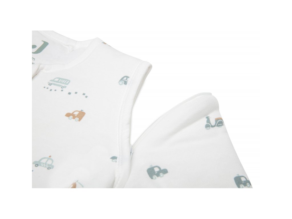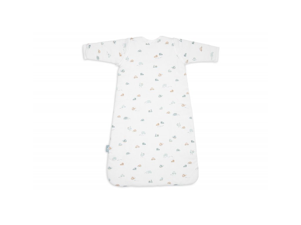 A praktikus, levehető ujjú hálózsák változatos használatot kínál az időjárástól és a szoba hőmérsékletétől függően. A finom töltetnek köszönhetően alkalmas a paplan helyettesítésére. A hálózsák biztosítja, hogy a gyermek éjszaka ne rúgja le magáról a takarót, így a teljes alvás alatt kényelmesen és melegen lesz anélkül, hogy a megfázás veszélye fenyegetné. A hónaljban található fedett cipzárak lehetővé teszik az ujjak könnyű eltávolítását, ha a hálózsákot melegebb környezetben, ujjak nélkül szeretné használni. Az elülső oldalon található cipzár lehetővé teszi a gyermek könnyű behelyezését a hálózsákba és a pelenkázást alvás közben.