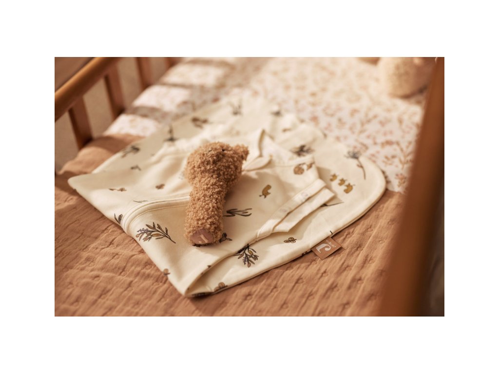 A könnyű, finom pamutból készült hálózsák elöl cipzárral rendelkezik, amely megkönnyíti a gyermek hálózsákba helyezését és a pelenkázást alvás közben. A karoknál lévő patentok lehetővé teszik az újszülött baba becsavarását úgy, hogy a kezei belül legyenek a nyugodtabb alvás érdekében. A patentok kigombolásával klasszikus hálózsákot kap a szabad karokkal való alváshoz.