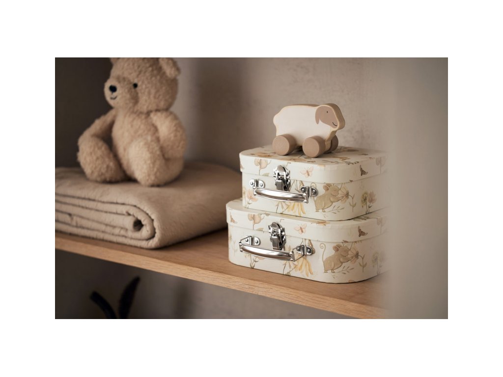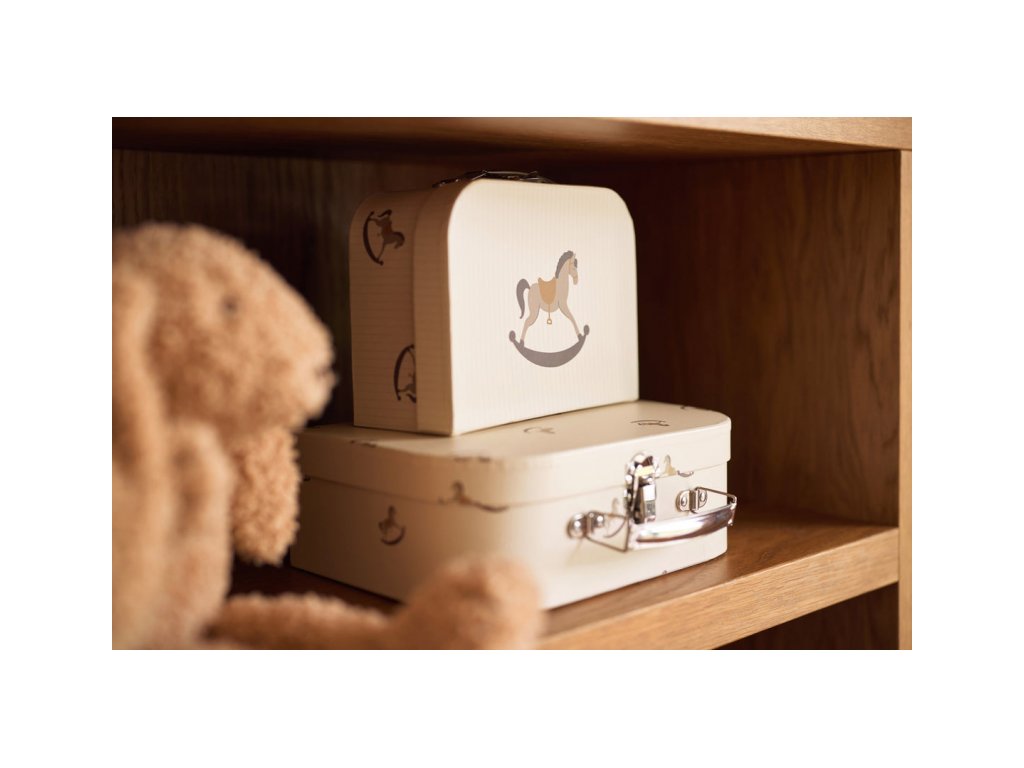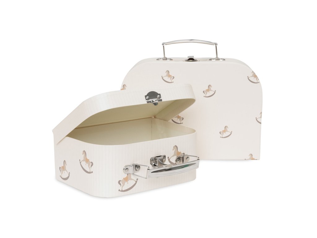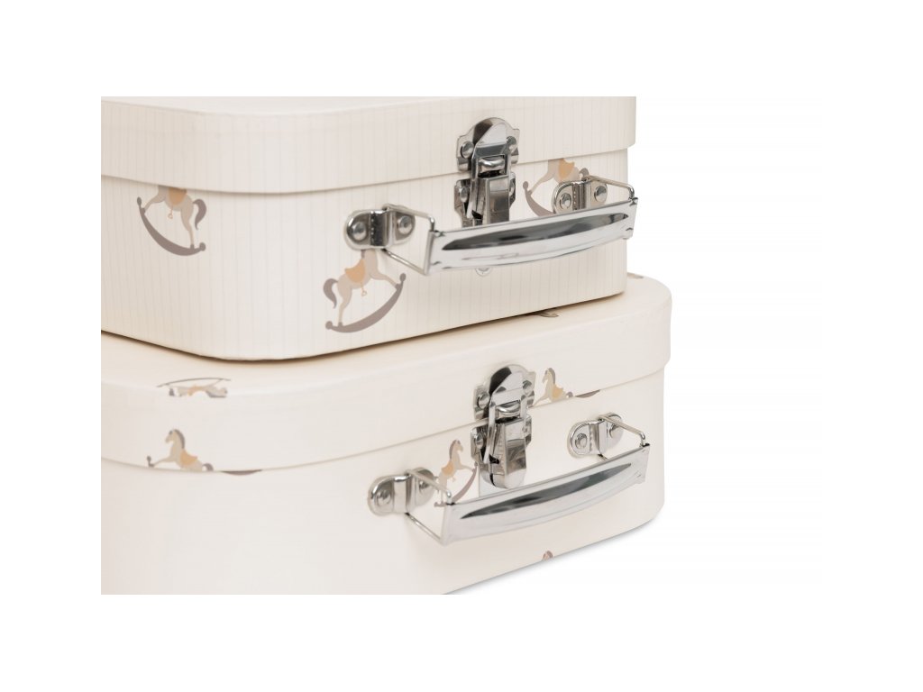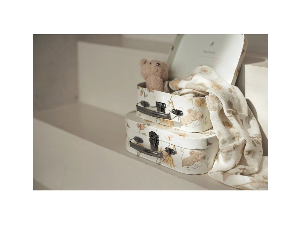 A klasszikus, minőségi kivitelű, gyönyörű nyomtatású gyermekbőröndök ideálisak apró játékok, művészeti kellékek vagy fontos gyermekkincsek tárolására. A kisebb bőrönd mérete alkalmas a nagyobb bőröndbe való tárolásra.