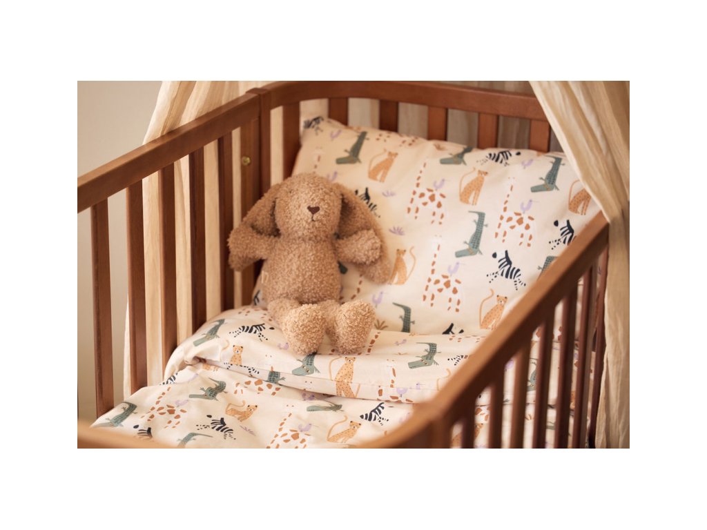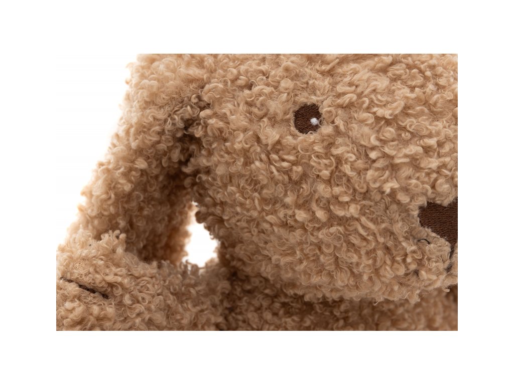 Aranyos nyuszi puha buklé anyagból, amely ideális alvótárs a kiságyba a nyugodt elalváshoz. Számos gyermekjáték részévé válhat, és gyönyörű dekorációként szolgálhat a gyermekszobában.