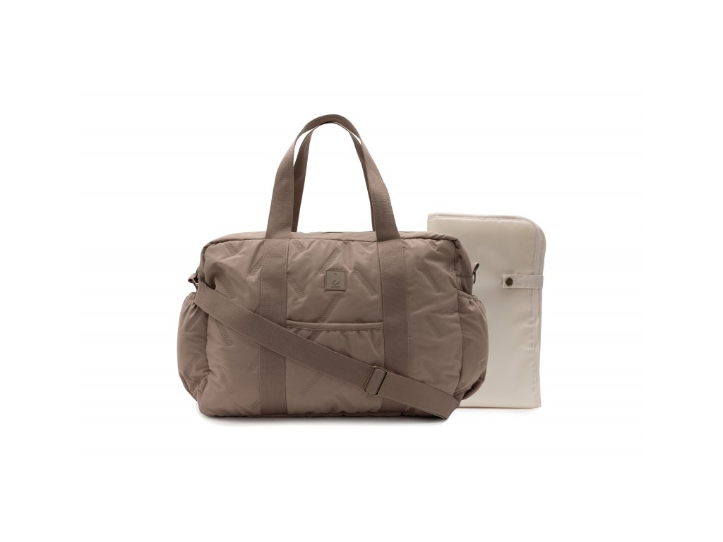 A Jollein pelenkázótáska a babával való sétákhoz és kirándulásokhoz az elegancia és a praktikum tökéletes kombinációja. Tartós textil anyagból készült, dombornyomott mintával, amely hozzájárul a luxus megjelenéshez. Belül több átláthatóan elválasztott zsebet és rekeszt talál, amelyek megkönnyítik a pelenkák, cumisüvegek és egyéb szükséges dolgok rendszerezését. A táska babakocsira rögzíthető fogantyúkkal, állítható vállpánttal a vállon való hordozáshoz és fogantyúkkal a kézben való hordozáshoz van felszerelve.