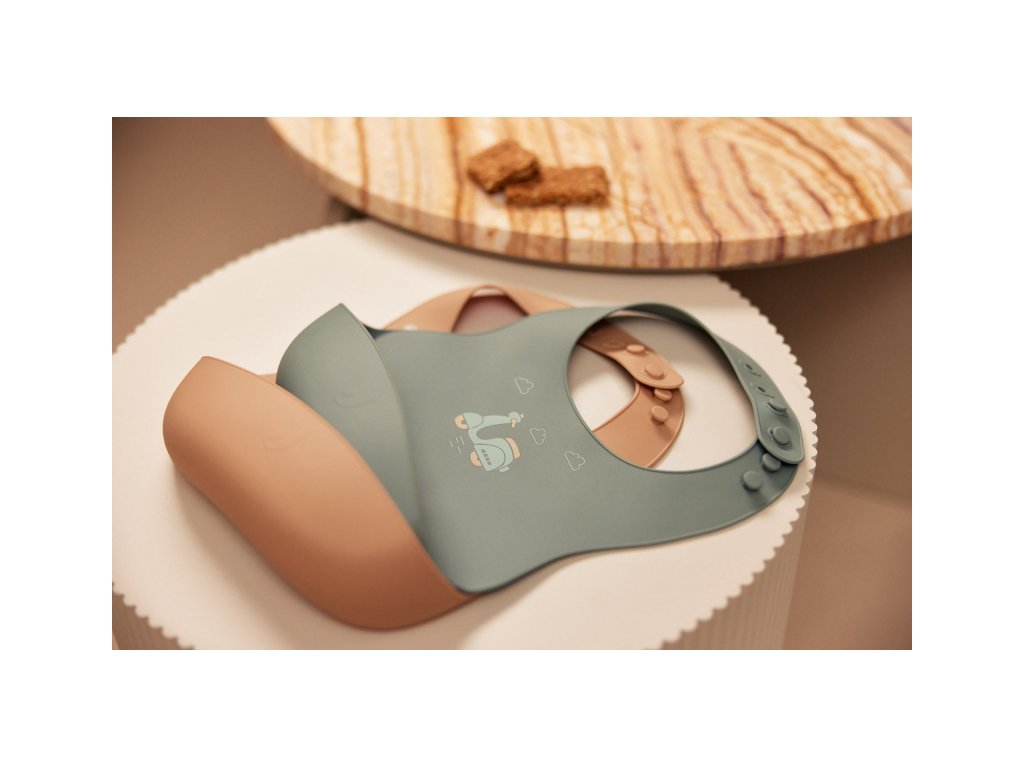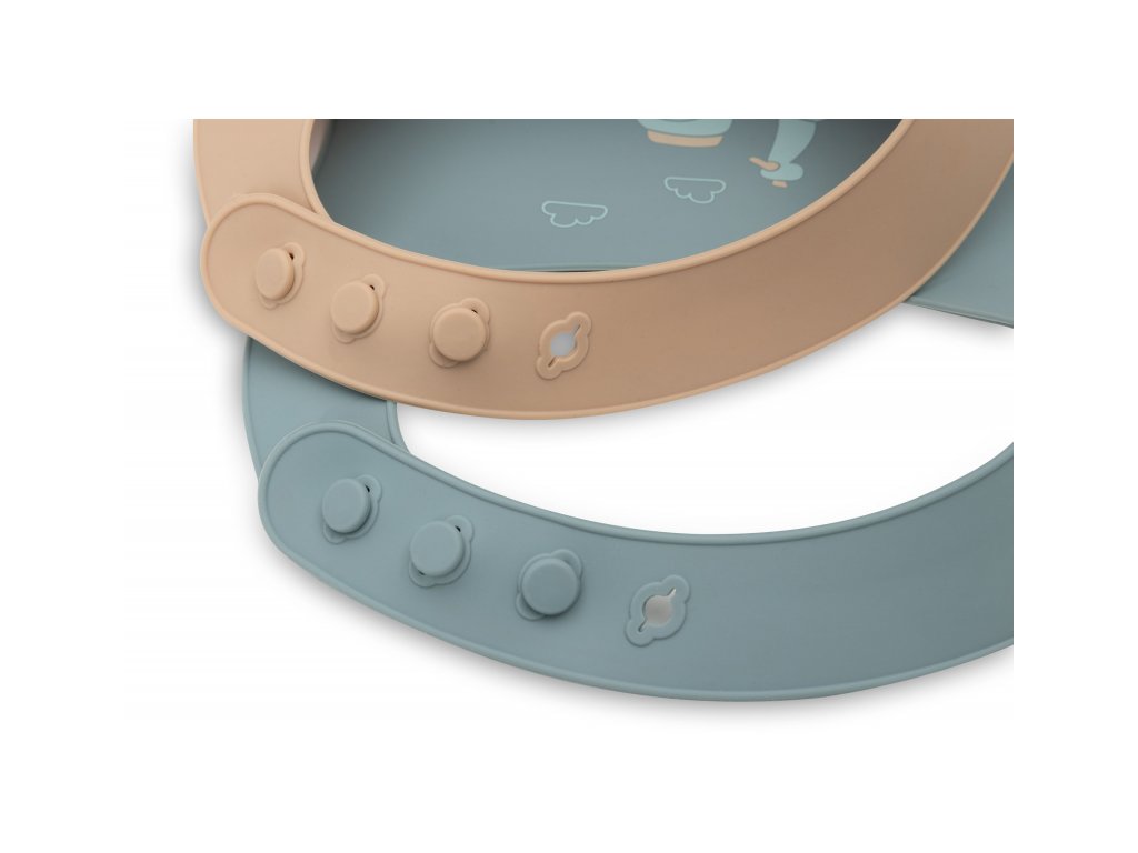 A finom, rugalmas szilikonból készült, gyönyörű nyomtatással ellátott előke széles zsebbel rendelkezik a morzsák és cseppek felfogására. Tökéletesen védi a gyermek ruházatát már az első önálló étkezési kísérletektől kezdve. A nyak mögötti rögzítés lehetővé teszi a nyak körüli méret egyszerű beállítását.