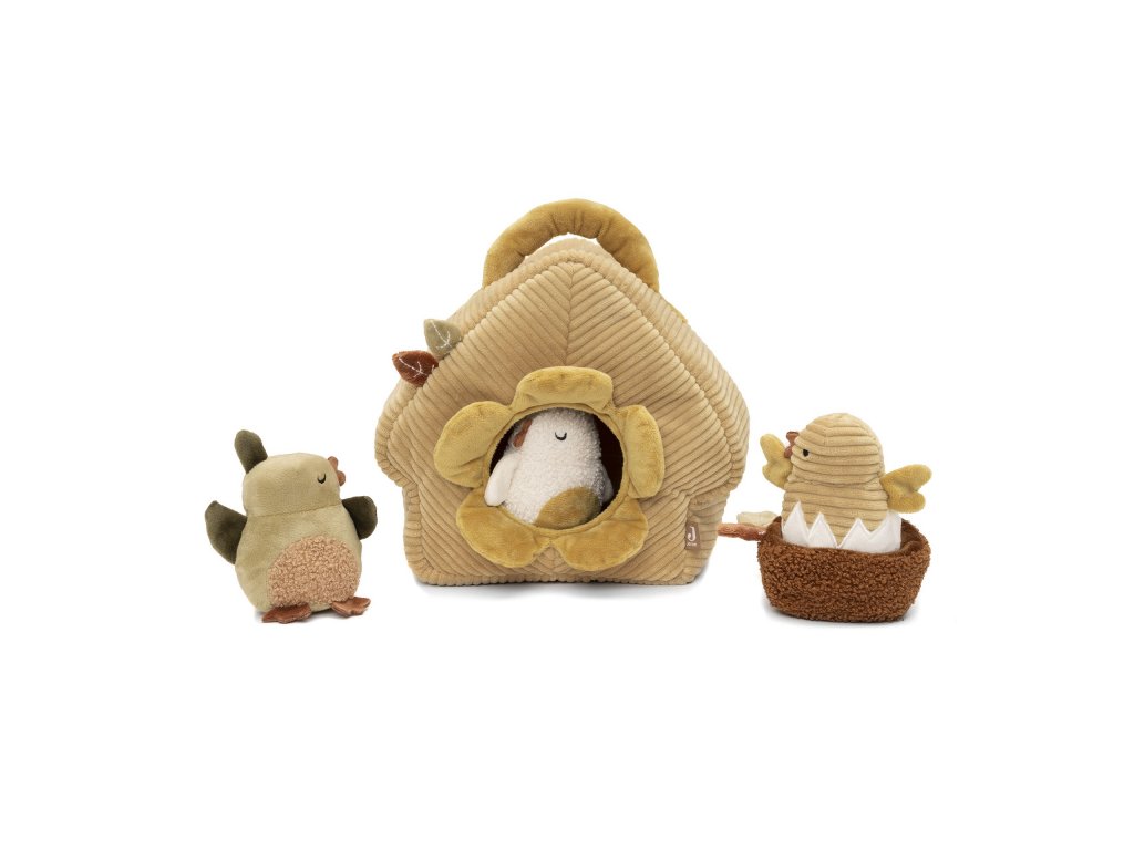 Vidám madárházikó három aranyos kis madárral végtelen felfedezési és játékórát kínál gyermekének. A madarak elrejtése a házikóban és kivétele fejleszti a gyermek kíváncsiságát, fantáziáját és finommotorikáját.