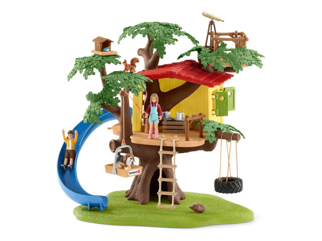 A Schleich® faházban Ben és Sarah órákon át tombolhatnak, játszhatnak és elfogyaszthatják a magukkal hozott finomságokat. Ki ne álmodna egy saját faházról? A készlet rengeteg kiegészítőt és funkciót tartalmaz a hosszan tartó szórakozás érdekében. 2 emberi figurával, 4 állattal és kiegészítőkkel. Minden Schleich® figura részletgazdag, szeretetteljes kézi festésű és magas oktatási értékkel bír. A Schleich® farmon a Sedlák család két gyermeke, Sarah és Ben órákon át tombolhatnak, játszhatnak és piknikezhetnek. Ki ne álmodna egy saját faházról? A készlet sok funkciót tartalmaz a hosszan tartó játékélményhez. Míg Ben az állatokat figyeli a kilátótoronyból, Sarah lecsúszik a csúszdán. És már várja őt a kölyök kutya. Sarah létrán keresztül jut vissza a faházba. A csörlő segítségével a beagle kölyök könnyedén felhúzható a hangulatos faházba. Így aztán mindannyian együtt játszhatnak. A házon belül a sünnek is megvan a maga kis otthona, a kis madár pedig a lombok birodalmában érzi magát otthon. 2 emberi figurával, 4 állattal és nagyszerű kiegészítőkkel. A készlet ideális kiegészítője a külön megvásárolható, nagy, 42407-es számú farmnak, amely istállóval és állatokkal rendelkezik. Minden Schleich® figura részletgazdag, szeretetteljes kézi festésű és magas oktatási értékkel bír. Csúszda, gumiabroncs-hinta és kötélhágcsó. A csörlő segítségével a tálca felhúzható a faházba! Szuper kilátó platform az állatok megfigyelésére. A fa törzsének üregében a sünnek van otthona! A figurák mozgatható karokkal és lábakkal rendelkeznek. Tartalom: 1x ház, 1x fa, 1x kölyökkutya, 1x mókus, 1x sün, 1x madár, 1x fióka, 1x kislány, 1x csúszda, 1x csörlő, 1x kötélhágcsó, 1x gumiabroncs-hinta, 1x padlólemez, 1x kilátó, 1x távcső tartóval, 1x madáretető, 4x korlát, 2x tányér, 2x csésze, 1x doboz, 2x szék, 1x matrica. Mérete: 32 x 23 x 29 cm. Csomag mérete: 40 x 10,5 x 34,5 cm. 3 éves kor alatti gyermekek számára nem alkalmas. Ajánlott életkor: 3-8. Videó: https://www.youtube.com/watch?time_continue=2&v=luHBA0nNYiA&feature=emb_logo