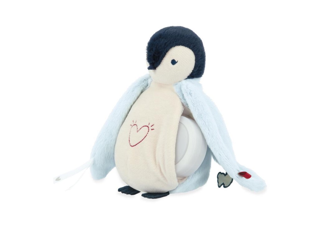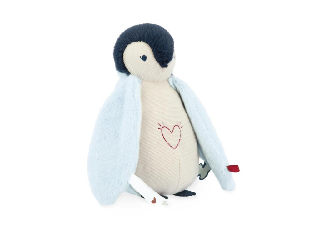 A pingvin hűséges állat, a védelem és az élethosszig tartó kötődés szinonimája. Ennek a rózsaszín plüssjátéknak a szárnyai szívvel díszített szalagokkal vannak átkötve, amelyek azt az erős köteléket szimbolizálják, amely a babát a szüleivel összeköti: mi lehetne megnyugtatóbb egy nagy alvás előtt?
