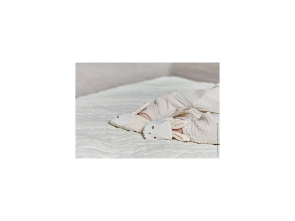 A rágóka garantáltan PVC- és BPA-mentes, így biztonságos a baba számára. Ezt a készletet a hozzáillő nyuszis papucsok egészítik ki, amelyek 0-6 hónapos csecsemők számára alkalmasak. Hosszuk 11 cm.