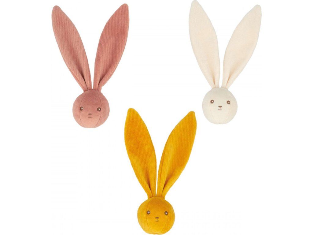 Egy kis nyuszigolyó, amelyet könnyű és puha tartani. A benne lévő csengő hangja felébreszti a kicsiket játék közben, és nagy fülei bárhol lóghatnak. Egy kis nyuszi, amely soha nem hagyja el a gyermekét.