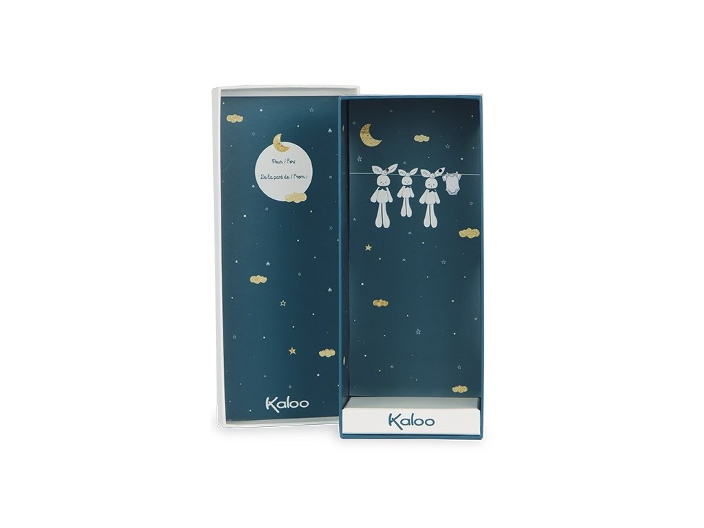 A baba és a nyuszi egyben, a Doll Rabbit Blue a francia Kaloo Lapinoo sorozatából, gyönyörű ajándék a babák számára születésüktől kezdve. A 25 cm magas kék nyuszi puha velúrból készült, így érzékeny gyermekbőrre is alkalmas.