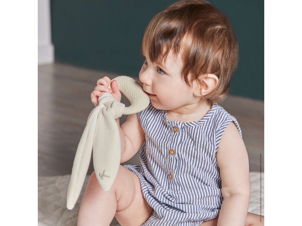 Kaloo Lapinoo Szilikon rágóka megkötős fülekkel, krémszínű