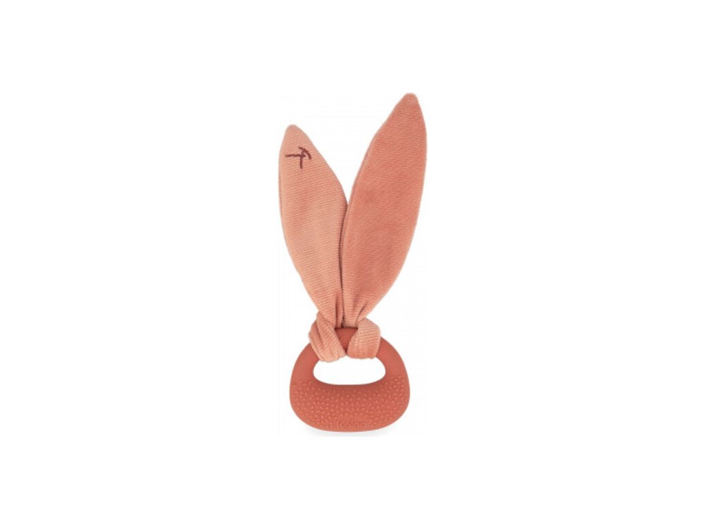 Kaloo Lapinoo Szilikon rágóka megkötős fülekkel, terrakotta színben