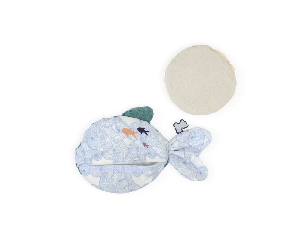 Ez a hal alakú, plüss, természetes melegítőpárna ideális plüssjáték a gyermek fájdalmának enyhítésére születésétől kezdve. Levehető huzattal rendelkezik, és egy kivehető tasakot tartalmaz.