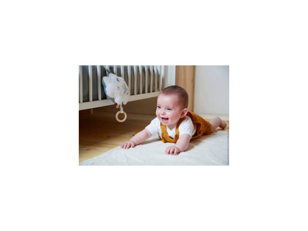Hagyja, hogy a felfedezés most kezdődjön! A textil zenélő felhő finoman nyomott és hímzett a zöld egérke mintájával, a párna pedig kulcsfontosságú elem a baba fejlődéséhez.