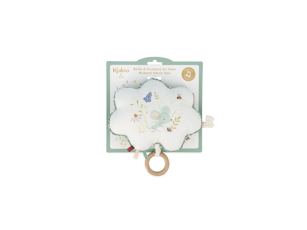 A Kaloo Zöld egérke textil zenélő felhő elválaszthatatlan barátja lesz a legkisebb babák első pillanatainak.