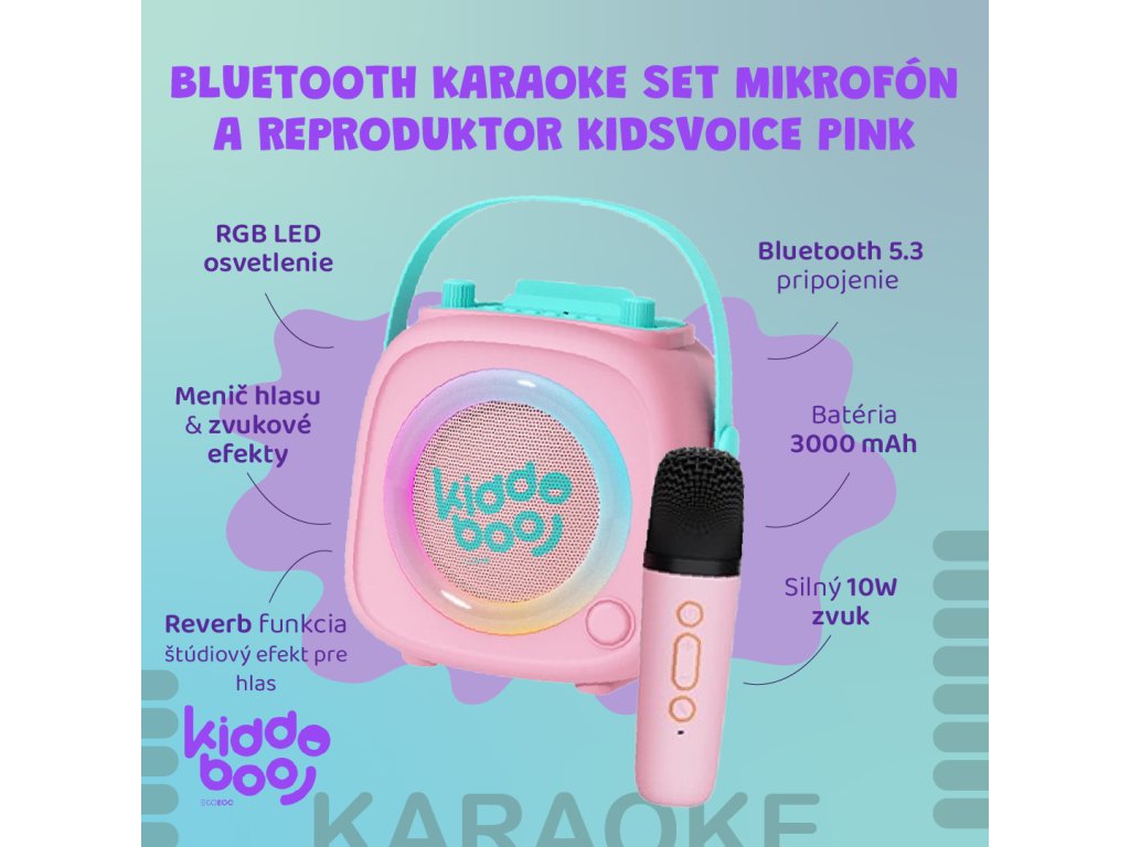 Kiddoboo Bluetooth Karaoke szett mikrofon és hangszóró KidsVoice Pink