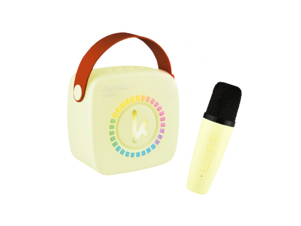 Bluetooth Mini Karaoke szett mikrofon és hangszóró Sárga Szórakoztató karaoke szett gyerekeknek hangváltóval és effektekkelFedezze fel a szórakozás világát a vezeték nélküli mini karaoke szettel, amely egyetlen kompakt eszközben egyesíti a mikrofont, a hangszórót és a fény show-t. Kifejezetten 3 éves kortól gyerekeknek tervezték, ez a szett ideális a kis énekesek számára, akik szeretik a zenét, a táncot és a kreativitást.mS egy nagy teljesítményű 1200 mAh-s akkumulátorral, akár 10 méteres hatótávolsággal és Bluetooth 5.3 technológiával gyermekeid korlátlanul élvezhetik a vezeték nélküli éneklést. A beépített hangváltó, a hangeffektusok és a reverb funkció professzionális hangzást kölcsönöz az éneknek, míg az RGB világítás minden helyiséget beragyog a zene ritmusában.Miért fogod imádni?