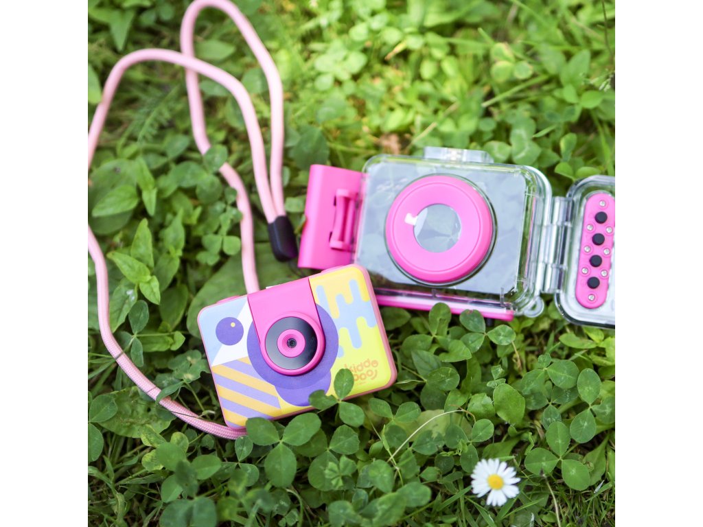 Splash Pink gyermek akciókamera Kamera kis kalandoroknak Fedezze fel a fényképezés és a videózás világát a Kiddoboo Splash Pink gyermek akciókamerával – ideális társ 6 éves kortól gyermekek számára. Ezt a rózsaszín akciókamerát kifejezetten a kis felfedezők számára tervezték, akik szárazföldön, homokban és víz alatt is szeretnék megörökíteni kalandjaikat. Egyszerűen kezelhető, biztonságos kialakítású, és néhány játékot is tartalmaz.Miért fogják a gyerekek imádni?180°-ban forgatható kamera – lehetővé teszi az egyszerű szelfiket és a különböző szögekből történő felvételt3 méter mélységig vízálló – a védőtoknak köszönhetően ideális úszáshoz és vízi játékokhoz2MP kamera – kiváló minőségű fényképeket és videókat készít32GB micro SD kártya – elegendő hely minden emléknek600mAh akkumulátor – hosszú üzemidőt biztosít a megszakítás nélküli szórakozáshozTartozékok, amelyek belül várnak:Védő vízálló tokKerékpártartóNyakpántSisaktartóA Kiddoboo Splash Pink több, mint egy kamera – egy eszköz, amely támogatja a kreativitást, a kalandot és a szórakozást. Ideális ajándék azoknak a gyermekeknek, akik szeretnék felfedezni a világot és megörökíteni felejthetetlen pillanataikat. Itt találja a használati útmutatót