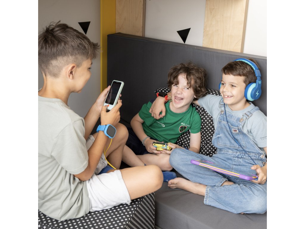 MobiStar okostelefon Az első okostelefon gyerekeknek, a biztonságra helyezve a hangsúlyt. A Kiddoboo MobiStar egy speciálisan tervezett gyermek okostelefon 6 éves kortól, amely a technológia világát a szülői felügyelettel ötvözi. Kicsi, biztonságos, játékos és ideális első telefon minden kíváncsi gyermek számára.Mindig kéznél van, még akkor is, ha távol vagy. Úgy működik, mint egy hagyományos okostelefon, SIM-kártya behelyezésének lehetőségével (nem tartozék).Több kommunikációs mód - a SIM-kártyának köszönhetően gyermeke telefonálhat, üzeneteket küldhet, videohívást kezdeményezhet vagy megoszthatja a helyzetét. 2000 mAh akkumulátor – egész napos üzemidő az iskolában és a szabadidőben is.Android 14 rendszeren fut.Google Family Link – egy alkalmazás, amelyet a szülők imádni fognak. Teljesen kompatibilis a szülői felügyelet funkcióival a Google Family Link alkalmazáson keresztül.A szülők kezelhetik a képernyő előtt töltött időt, az alkalmazásokat, az engedélyeket és az online hozzáférést – így biztonságos és ellenőrzött környezetet teremtenek a gyermekek számára.A szülői felügyelet aktiválásához Google-fiók beállítása szükséges a gyermek számára, és a szülőnek telepítenie kell a Google Family Link alkalmazást.Miért fogják a gyerekek szeretni a MobiStar-t? Méretben és súlyban is a kis gyermekkezekhez igazítva.Színes, szórakoztató dizájn zsinóron való hordozási lehetőséggel.Előre telepített gyermekalkalmazások, játékok és kreatív felfedezések.Duál kamera (8 MP-es elülső és 13 MP-es hátsó kamera) Micro SD kártya behelyezésének lehetősége (nem tartozék) – elegendő hely a fényképek, videók és számos alkalmazás számára.Mit nem szabadna a szülőknek kihagyni? Valós idejű GPS helymeghatározás lehetősége.A MobiStar okostelefon SOS gombot tartalmaz – lehetővé teszi a gyermekek számára, hogy vészhelyzet esetén azonnali segítséget hívjanak, helyzetüktől vagy helyüktől függetlenül.Speciális kékfény szűrővel van ellátva a kijelzőn – védi a gyermekek látását hosszabb nézés esetén.Hozzáférés korlátozása a nem megfelelő alkalmazásokhoz vagy webhelyekhez.A tartós szilikon test minimalizálja a sérülés kockázatát esés esetén.A Kiddoboo MobiStar egy modern gyermektelefon, amely a bizalomra, az ellenőrzésre és a játékosságra épít. Adja meg a gyerekeknek az első lépést a digitális világba – biztonságosan és mosolyogva.
