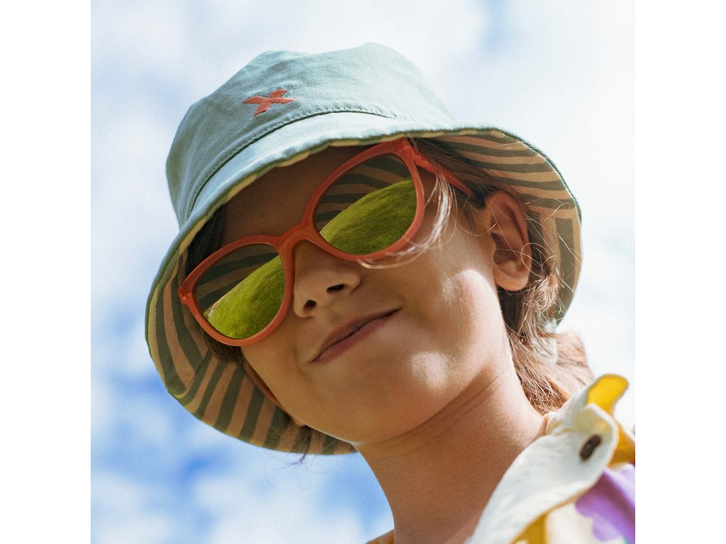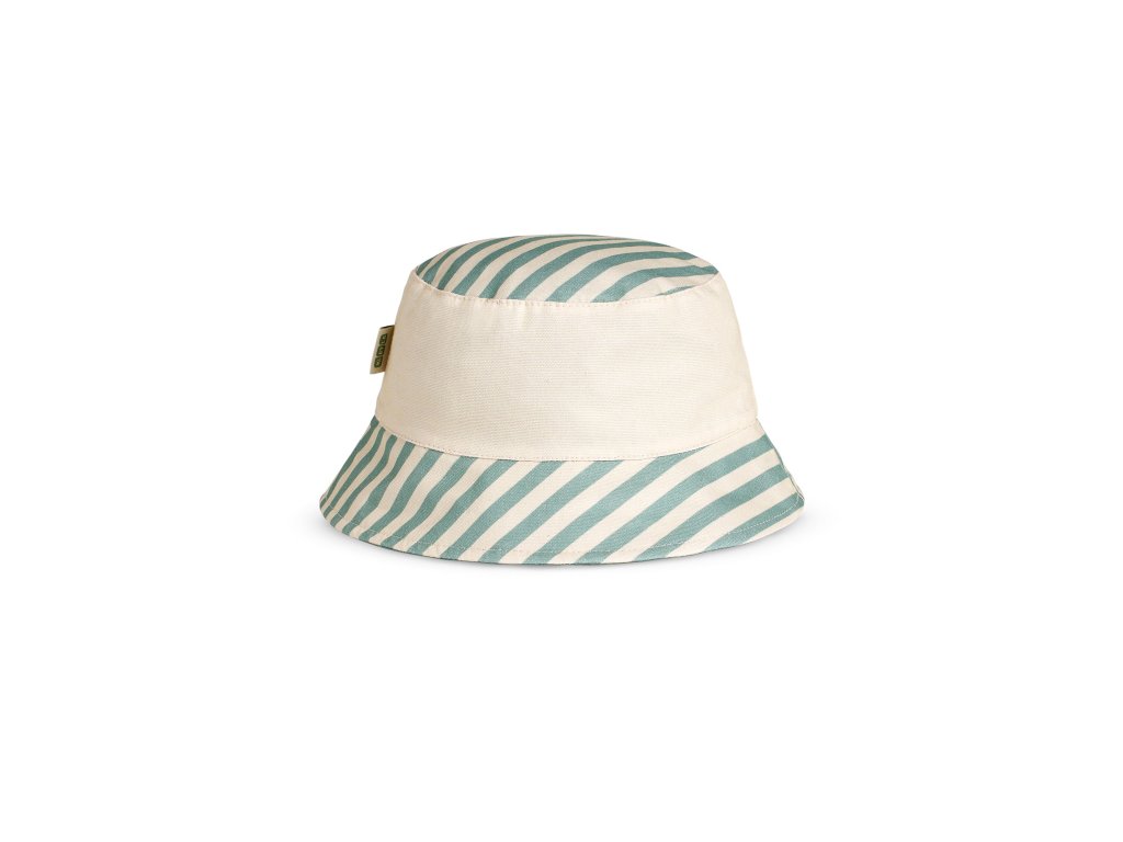 A KiETLA kétoldalas kalap optimális védelmet nyújt a gyermekek számára a napsugárzással szemben. Újrahasznosított pamutból készült, GRS (Global Recycled Standard) tanúsítvánnyal és poliészterrel, és már születéstől kezdve alkalmas gyermekek számára. A kalap puha, kényelmes és hosszabb viselésre is alkalmas. Vidd magaddal a strandra, a játszótérre vagy a „bringára”, és védd a gyerekeket az UV sugárzástól stílusosan.Az UPF 50+ szűrő kémiai kezelés nélkül készül, az anyag nem tartalmaz a kisgyermekekre és a környezetre káros anyagokat. Legmagasabb UPF 50+ védelmi index (az UVA és UVB sugarak akár 98%-át blokkolja). Kétoldalas – az egyik oldala finom, egyszínű frottír, a másik oldala csíkos pamut. A legkisebb, 44–48 cm-es mérethez zsinór is tartozik, amivel a kalap az áll alá köthető. Összetétel: csíkos oldal - 100% újrahasznosított pamut GRS tanúsítvánnyal, egyszínű frottír oldal – 80% pamut + 20% poliészter. A termék megfelel a 2016/425 európai rendeletnek. A kalap három méretben kapható, és körülbelül 12 éves korig alkalmas gyermekek számára: fejkörfogat 44–48 cm. fejkörfogat 48–52 cm. fejkörfogat 52–56 cm. Felhívjuk figyelmét, hogy az UV-védelemmel ellátott kalap nem helyettesíti a test más részeinek megfelelő napvédelmét.Karbantartás: A lehető leghosszabb élettartam érdekében javasoljuk: kézi mosás, agresszív mosószerek használata nélkül, ne csavarja ki, ne szárítsa szárítógépben, hagyja szabadon megszáradni árnyékban.