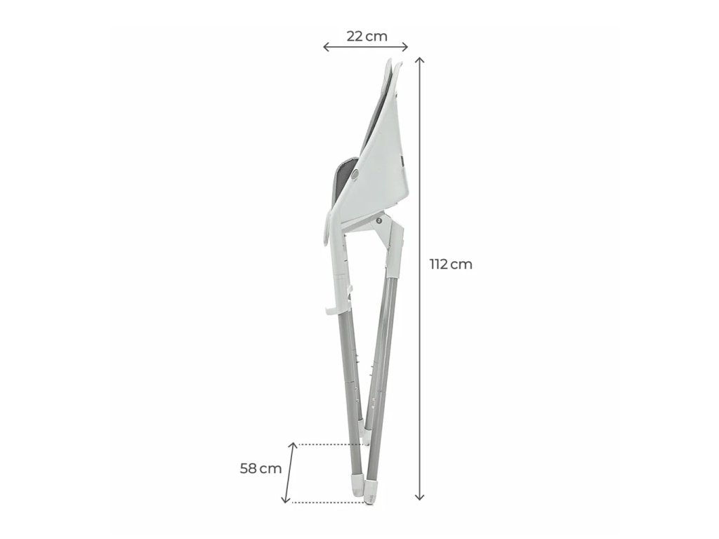 - A szék teljes méretei összecsukott állapotban (H) x (Sz) x (M): 58 x 22 x 112 cm