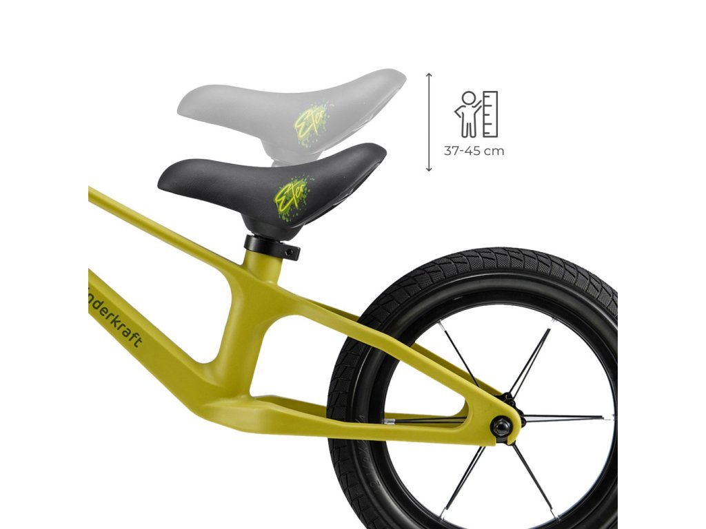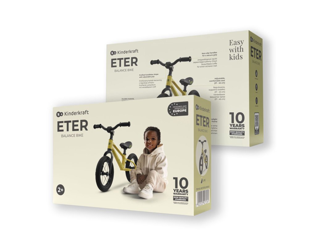 Mindig első a célban. Az ETER egy ultrakönnyű, sportos kialakítású (3 kg-os) egyensúlyozó futóbicikli, amely ideális a kis sebességrajongóknak. A monolitikus nylon váz rendkívül könnyű, ellenáll a nedvességnek, a korróziónak és a mechanikai sérüléseknek. Az állítható ülés és a 12 hüvelykes, karbantartást nem igénylő PU kerekek kényelmes és stabil utazást biztosítanak. A csúszásmentes fogantyúk, az ergonomikus kormány és a biztonságos konstrukció maximális védelmet nyújtanak. A váz praktikus fogantyúként is szolgál a hordozáshoz – vagy pihenőhelyként játék közben.