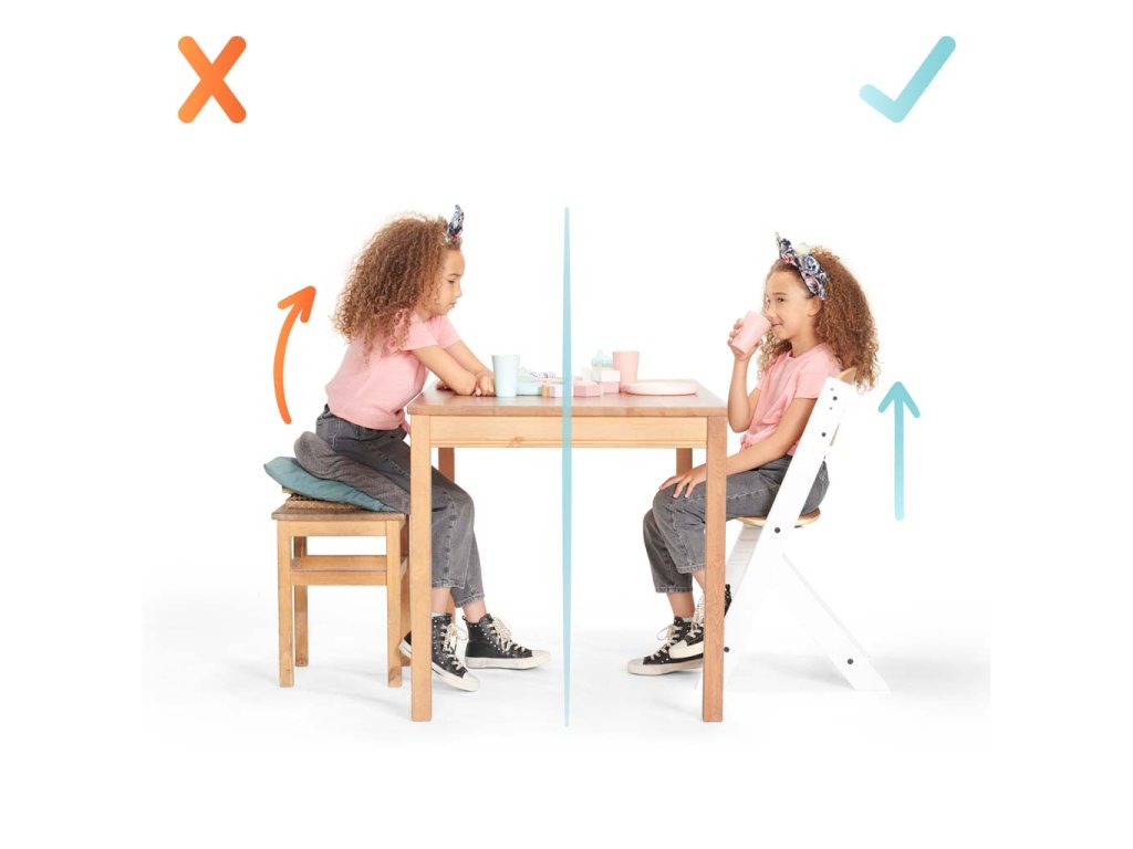 - Az állítható lábtartó növeli a kicsi kényelmét étkezés közben – életkortól és magasságtól függetlenül!