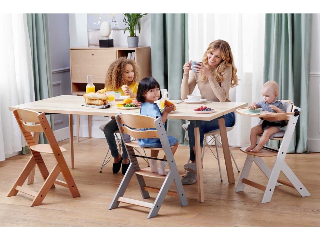 Van egyáltalán etetőszék, amely évekig szolgálja a gyermeket? Igen! Pontosan ilyen az ENOCK szék. Az ENOCK nemcsak egy biztonságos és praktikus etetőszék, hanem egy ergonomikus szék is nagyobb gyerekek számára. Hogyan lehetséges ez? Az ülés és a lábtartó magassága állítható, így könnyebben hozzáigazítható a szék a gyermek életkorához és magasságához. Az ENOCK-ot a családod számára tervezték – ez egy olyan szék, amelynek a dizájnja illeszkedik a házad vagy lakásod belső teréhez is. Ezenkívül egyszerűen hozzáigazíthatod az asztalhoz a konyhában, az étkezőben vagy a nappaliban. A profilozott háttámlának köszönhetően a gyermek helyes testtartást tart étkezés közben, és lehetősége lesz az asztalnál időt tölteni a felnőttekkel együtt. A székhez mellékelt kényelmes betét garantálja a kényelmet étkezés és szórakozás közben.