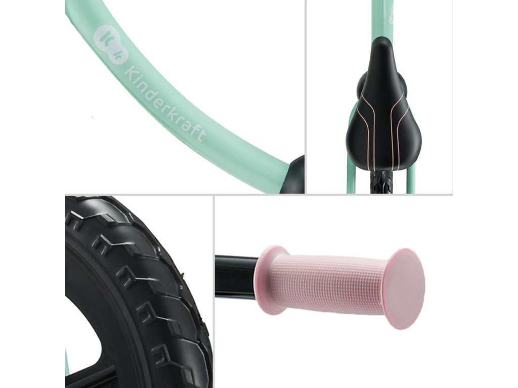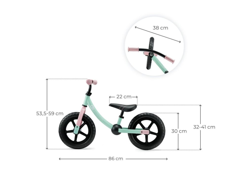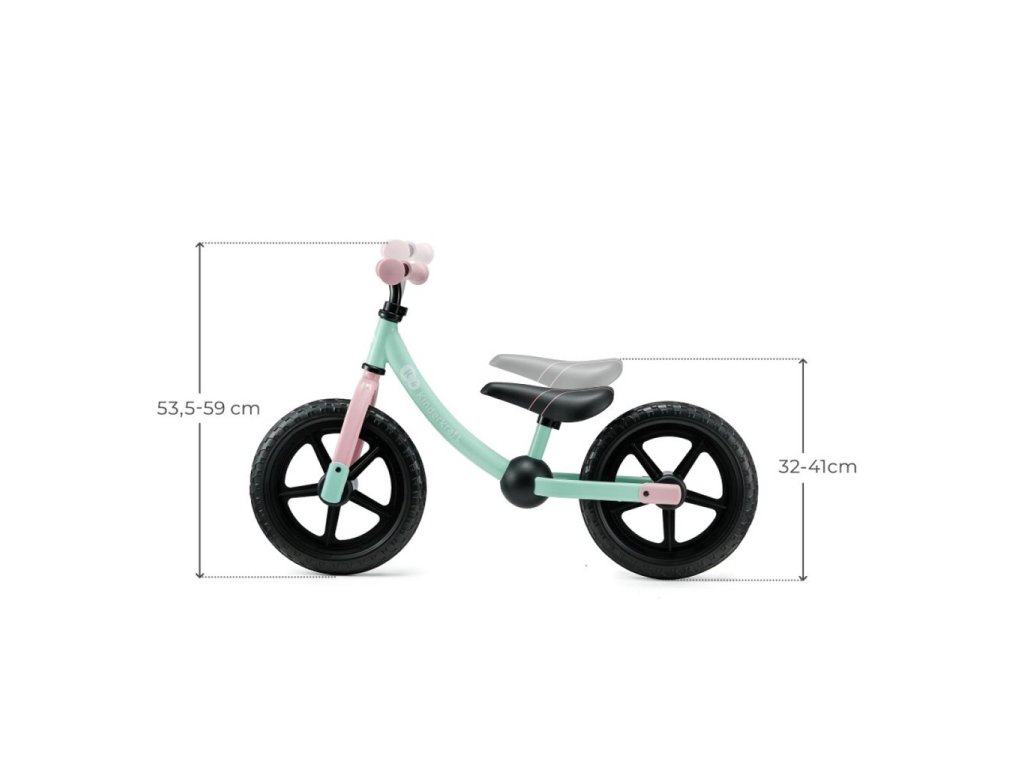 - szabályozás – a kormány és az ülés magassága a gyermek magasságához igazítható. A legalacsonyabb lehetséges ülésmagasság (31 cm) és az alacsony váz eredményeként a futóbicikli már 80 cm-es gyermekek számára is alkalmas.