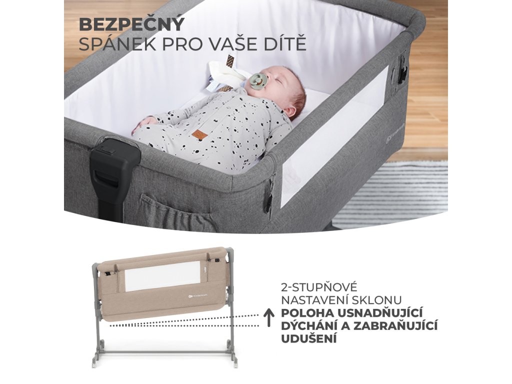 A gyermekeknek szükségük van a szülők melegére és közelségére – a biztonság iránti igényük különösen éjszaka erősödik. A Kinderkraftnál tudjuk, hogyan lehet ezt összekapcsolni a kényelmes alvás iránti igényével. A NESTE GROW kiegészítő kiságy több, mint egy klasszikus babaöböl. Ez egy multifunkcionális kiságy, amely egyben csecsemő kiságy, kiegészítő kiságy és különálló kiságyként is funkcionál egy kétéves gyermek számára.