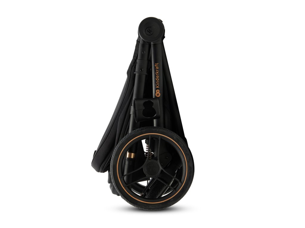- A nagy, lengéscsillapítóval ellátott kerekek lehetővé teszik a babakocsi könnyű felemelését, és nem igényelnek pumpálást.