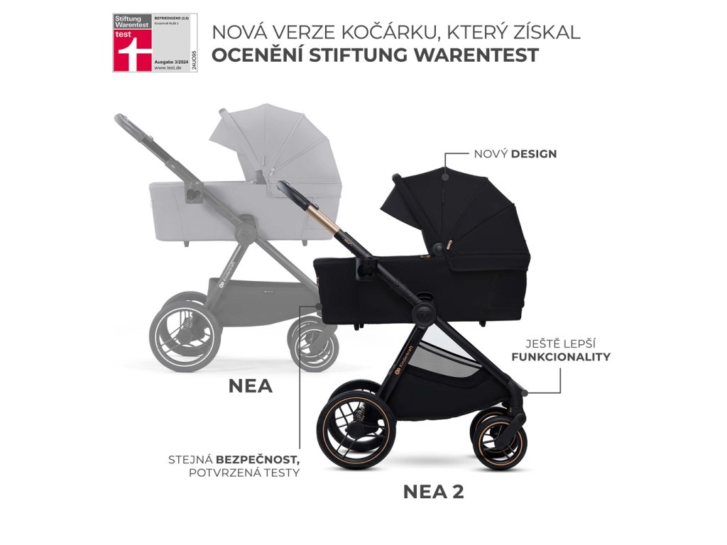 Ez a NEA 2 – egy multifunkcionális 2 az 1-ben babakocsi, amely kompakt kialakításával és minden terepre alkalmas kerekeivel kelti fel az érdeklődését. A nagy kerekek lehetővé teszik, hogy nagyobb probléma nélkül leküzdje a magas járdaszegélyeket vagy az egyenetlen városi járdákat. A NEA 2 válasz a modern szülők igényeire, akik stabil, erős, mégis jól irányítható babakocsit keresnek. A tetőn lévő ablak lehetővé teszi, hogy könnyen ellenőrizze, hogy a kisgyermek elaludt-e a séta során, és ha véletlenül a gyermek bepiszkolja a babakocsit, a mosható huzatot könnyen leveheti. A STOP & RIDE fék lehetővé teszi a babakocsi könnyű rögzítését és kioldását, az egyszerű összecsukható rendszer és a praktikus megoldások, mint például a SELF STANDING vagy az AUTO LOCK megkönnyítik a szállítást és a tárolást.