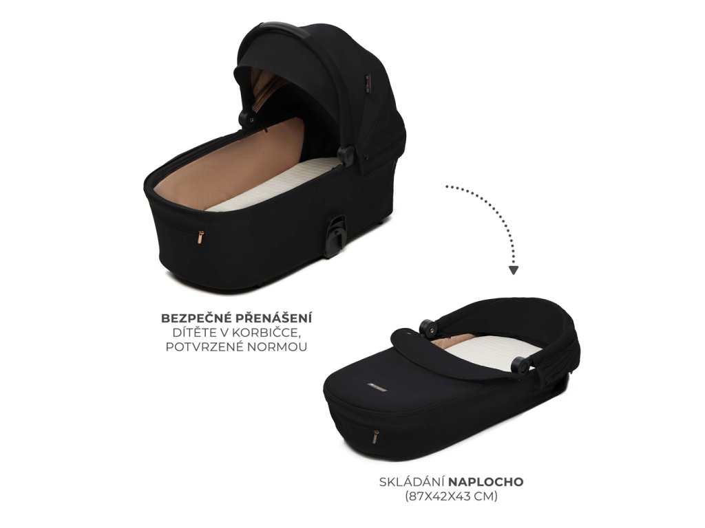 - Multifunkciós babakocsi: nagy mózeskosár, kényelmes babakocsi, kétirányú utazási lehetőség.