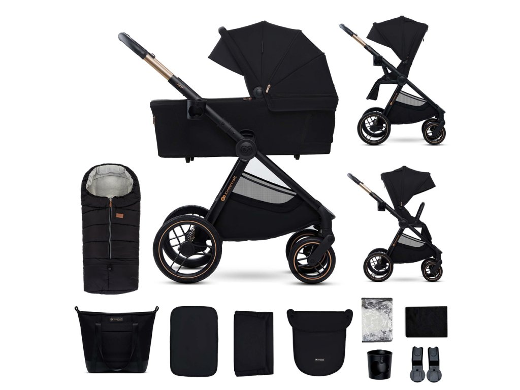 KINDERKRAFT Kombinált babakocsi Nea 2 2 az 1-ben Éjfekete + 3 az 1-ben Jibot vízszintes tintafekete lábzsák