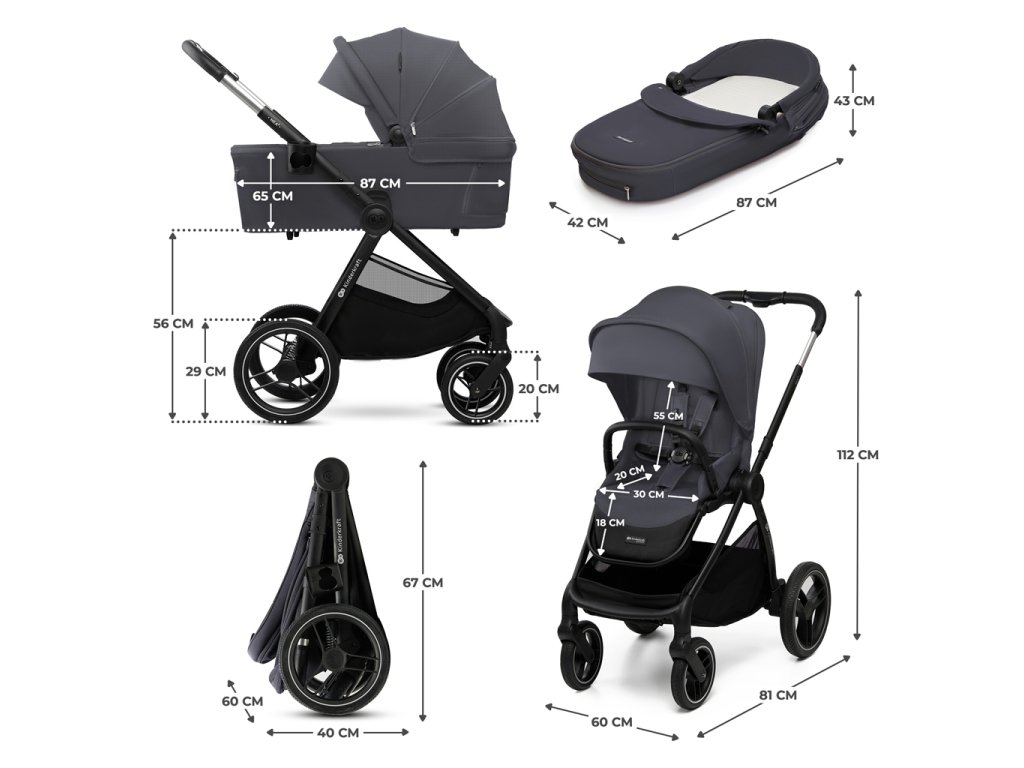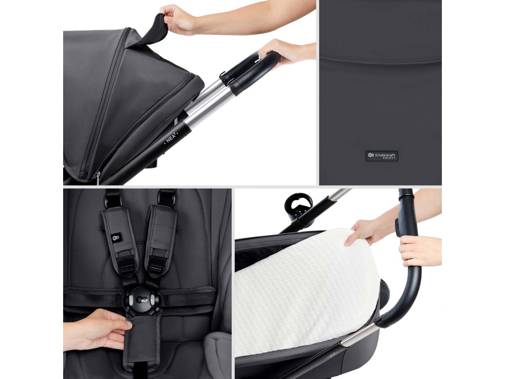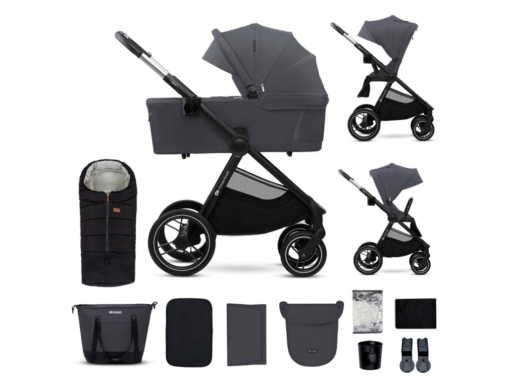 KINDERKRAFT Kombinált babakocsi Nea 2 2 az 1-ben Sötétszürke + Lábzsák 3 az 1-ben Jibot Vízszintes Tintafekete