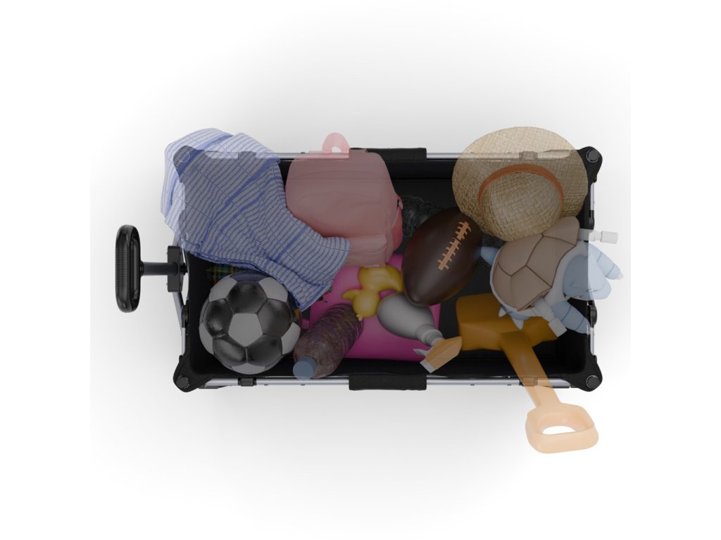 - Terepkerekek – a nagy PVC kerekek (10 cm szélesek) megbirkóznak a homokkal, a fűvel és a kaviccsal is