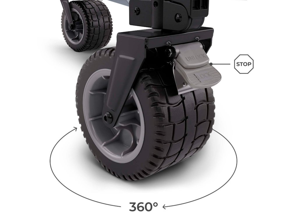 - Intuitív vezérlés – kerékrögzítés a stabilitás érdekében bármilyen felületen