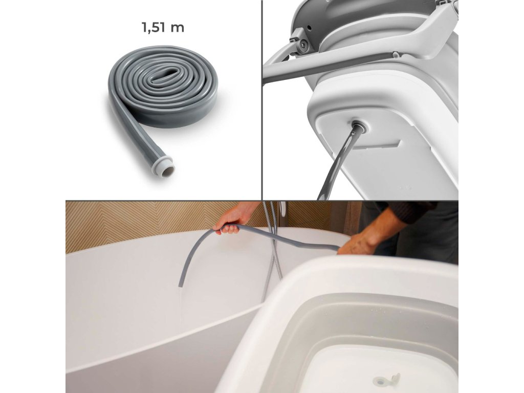 - Lefolyó 151 cm hosszú tömlővel – emelés vagy kiöntés nélkül