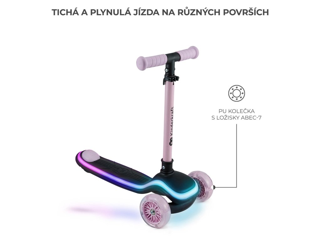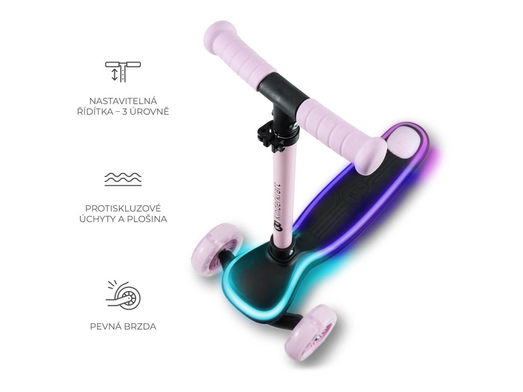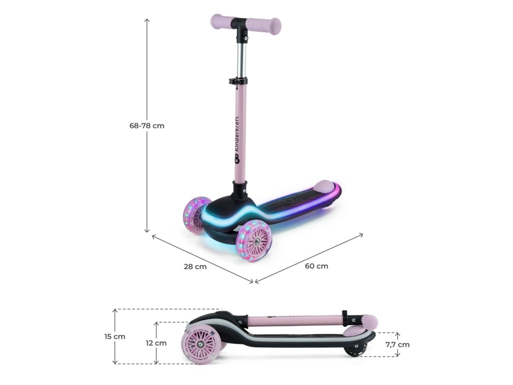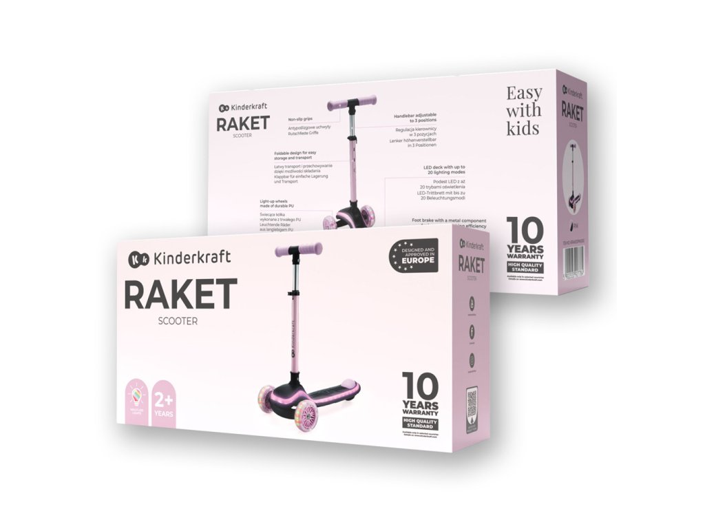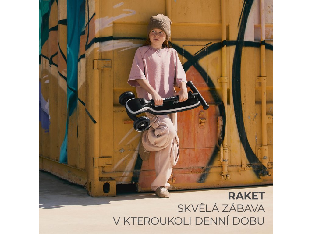 Szórakozás és biztonság egész nap. A RAKET egy gyermek roller intuitív testdőléssel történő irányítással, amely támogatja az egyensúly és a koordináció fejlődését. A világító LED platformnak és az RGB kerekeknek köszönhetően a rollerezés nemcsak izgalmas, hanem biztonságosabb is szürkület után. A roller ideális az első rollerezési élményekhez – egyszerű összecsukással, állítható kormány magassággal és sima rollerezéssel minden felületen.